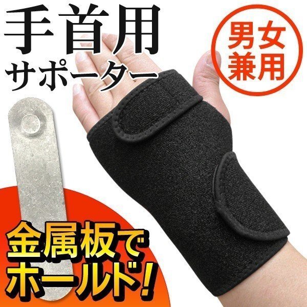 | しっかりフィット!金属板がしっかりサポート! 締め付けを自由に調整できる伸縮素材。 パソコンやスマホを長時間操作する方、文字をよく書く方、 赤ちゃんの抱っこに、スポーツ・トレーニングに! ちょっと手首が気になる・・・ちょっと違和感がある・・・ そんなときは手首サポーターでしっかり手首を固定! | |