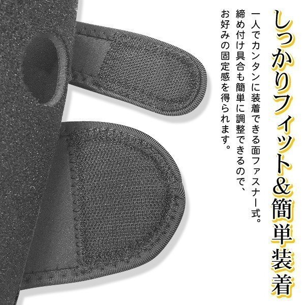 | 一人でカンタンに装着できる面ファスナー式。 締め付け具合も簡単に調整できるので、お好みの固定感を得られます。 | |