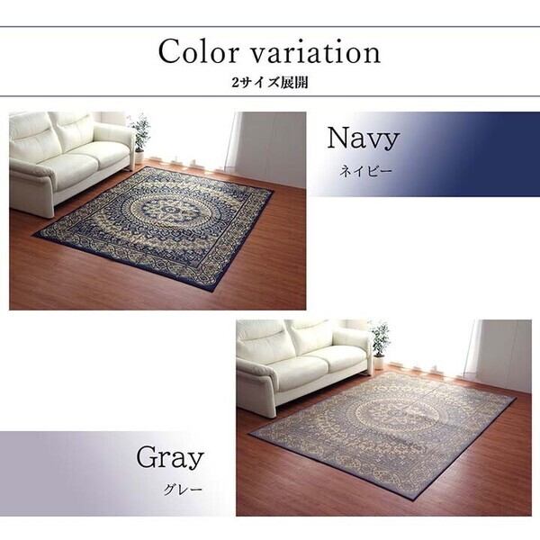 まるで絨毯のような細かい柄をデザインしたい草のラグです。 い草には空気の自然浄化作用、湿度の調節作用などがあります。 ホットカーペットカバーとしても使用できます。 い草に青森ヒバ加工を施しています。 (抗菌、防臭効果)裏面には滑りにくい加工をしたウレタンフォームを使用しているため、フローリングにも最適です。 約191×250cm ■生産地:日本(純国産) ■素材・成分:表地=い草裏地=ウレタンフォーム6mm 着日指定はお受けすることができません 発送後お問い合わせ番号をご連絡しますので 配送業者と調整をお願いいたします ************ 大型家具の場合 配送先地域によっては発送後8~10日ほどかかる場合があります ************ |