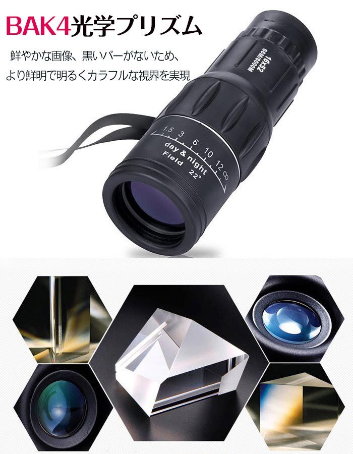 単眼鏡 望遠鏡 高倍率 ズーム 16倍 16X52 BAK4プリズム 高透過率 スマホホルダー 三脚 軽量 スマホレンズ スマートフォン対応 ☆1点 [浏览原始页面]