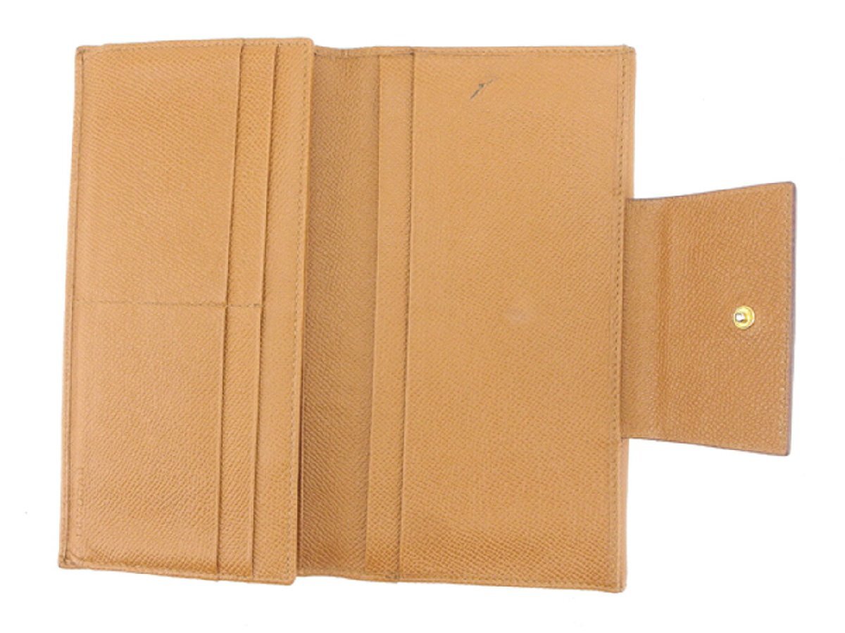 | コンディション | 全体の状態詳細:大きなダメージも無く、比較的良いコンディションです。スレ 汚れ(札入れ&カード入れ&ポケットもあり) 黒ずみ(小銭入れ) ペン跡(内側一部) 金具傷・ハゲ キレ小(ポケット上部端1ヶ所) ホック少しゆるめ(小銭入れ) などの一般的使用感があります。 |