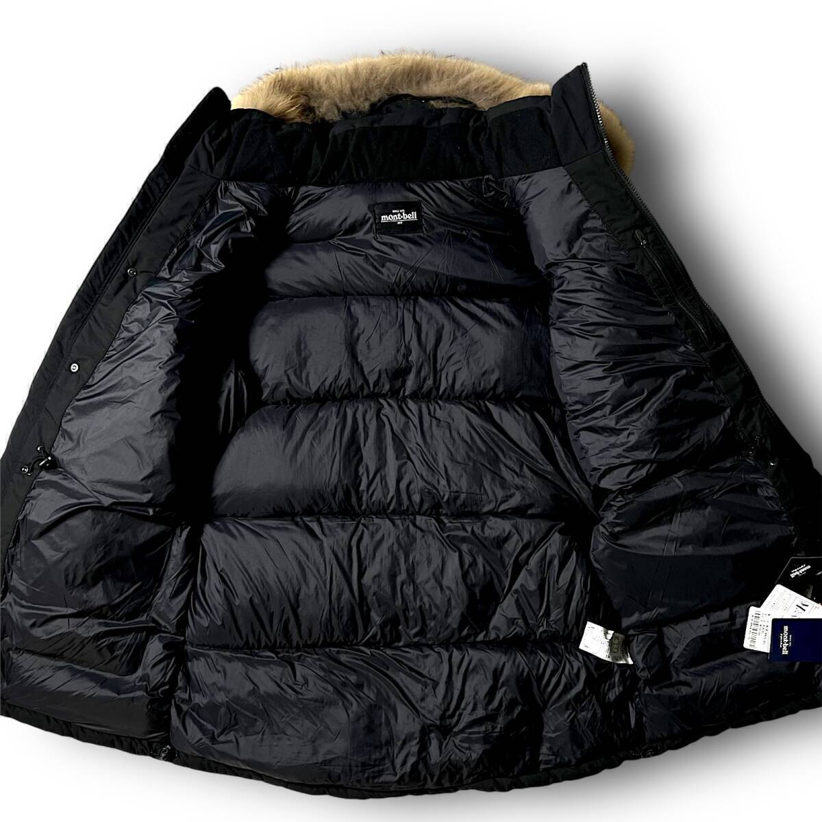 タイトル 新品 mont-bell モンベル 定価5.5万 撥水 防水 透湿 防風 防寒 保温 グースダウン使用 ロゴ刺繍 フード&ファー着脱 フルジップ ダブルジップ 3way ロングダウンジャケット ダウンコート L メンズ スポーツ レジャー キャンプ 旅行 アウトドア 普段使い タウンユース 秋冬 AW FW ブラック