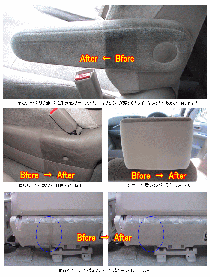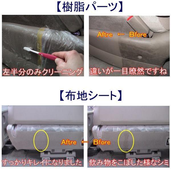 | 車内のダッシュボード・ドアパネル等のビニール・プラスチック・樹脂パーツはもちろん布製シート・床カーペット・フロアマット・天井等の様々な汚れに威力を発揮します。 | ||||||||