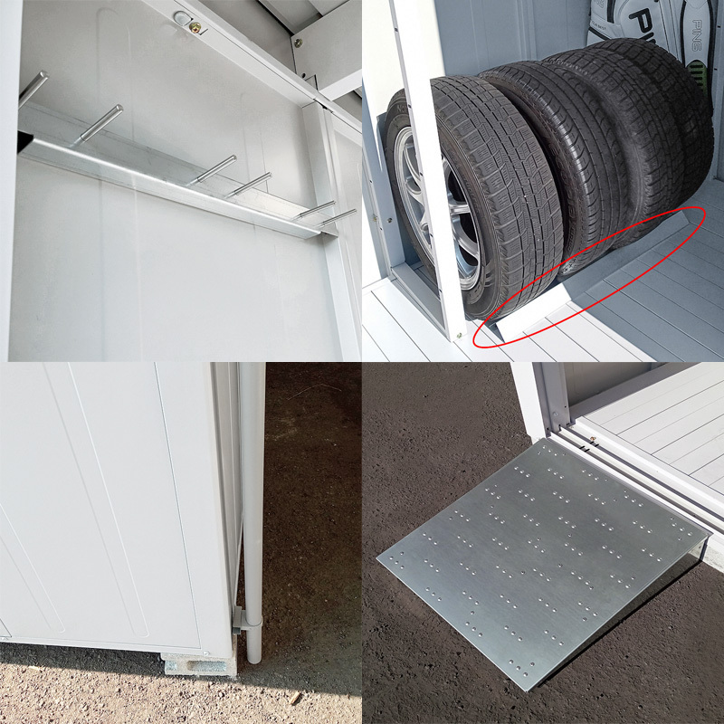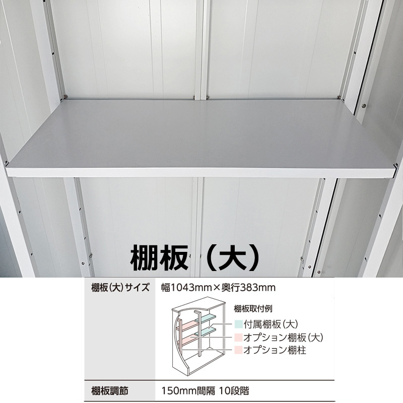 | 商品詳細 | この度は数ある商品の中から当商品を閲覧頂きまして有難う御座います。 商品定価 233,200円 ⇒ 販売価格 151,580円(送料・税込み) ・サビに強いカラー鋼板(亜鉛メッキ鋼板)で屋外でも長く安心してお使い頂けます。 ・開閉しやすい大型アルミ取っ手。荷物を持ちながらでもスムーズに開閉できます。 ・扉の開閉は組立て時に右開き・左開きをお選び頂けます。 ・2ロックシステムで安心のセキュリティ。仮ロック・本ロック(施錠)の2重ロックで しっかり盗難防止。施錠用の鍵は標準で2本付属します。 ・大きく使い勝手のよい棚板が2枚標準装備。 オプションの追加棚柱・棚板を追加することで横一列に棚板を設置する事が出来ます。 ・ベアリングを付ける事によって摩耗が少なく長期間に渡って精度を維持出来ます。 サ イ ズ:間口2289mm×奥行1222mm×高さ2100mm 約0.85坪、2.81平方m 最大開口寸法:間口1320mm×高さ1799mm 屋根寸法:間口2367mm×奥行1383mm×高さ2100mm 床 寸 法:幅2289mm×奥行1222mm 室内寸法:間口2212mm×奥行1042mm×高さ1830mm 棚板寸法:(大)間口1043mm×奥行383mm 製品重量:約183kg 耐積雪型:一般降雪地帯型 屋根耐荷重:約120kgf/平方m(一般降雪地帯で積約60cm) 床耐荷重: 約600Kgf/平方m 棚板耐荷重:約200kgf/平方m 扉カラー:GK(ギングロ)色 材 質:カラー鋼板(亜鉛メッキ鋼板) 屋根勾配:後方 標準装備:棚板(大)2枚・鍵2本・転倒防止金具・アンカープレート 棚板を横一列に設置する場合は、オプションの棚柱が必要です。 組立説明書:こちらからご覧頂けます。 仕様図:こちらからご覧頂けます。 梱包明細:こちらからご覧頂けます。 備 考: ・基礎ブロックは別途12個必要です。 大きさは幅19cm×長さ19cm×厚さ10cmが適当です。 ・こちらの商品はお客様組立品です。組立てを希望の場合はご注文前にお問合せ下さい。 ・オプションにて追加棚板、追加棚柱、雨どいセット、スロープ、マルチフック、 タイヤストッパー、センサーライト、スペアキー、錠前セットのご提供も可能です。 お気軽にお問い合わせ下さい。 |