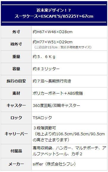 ~近未来デザイン!?スーツケース≪ESCAPE'S/B5225T≫67cm~ |