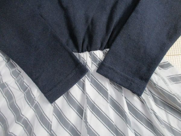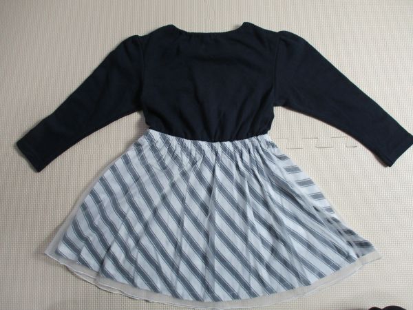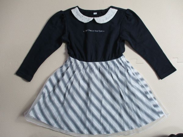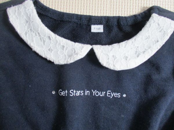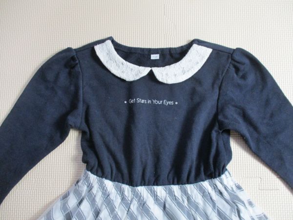 | BG841【TOPVALU・イオン】ロゴプリント 襟レース チュール 長袖 ワンピース 女児 濃青 110 | |