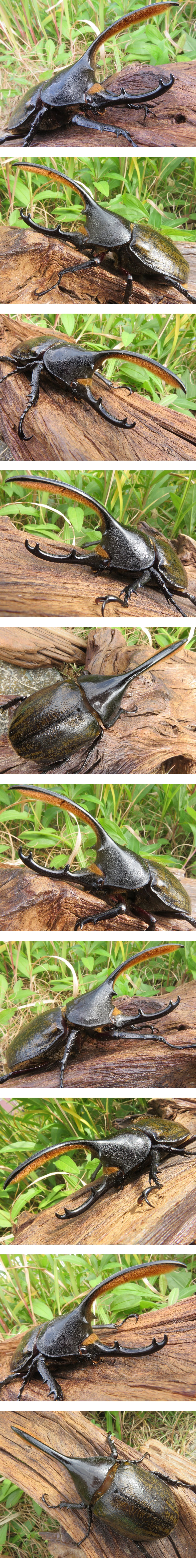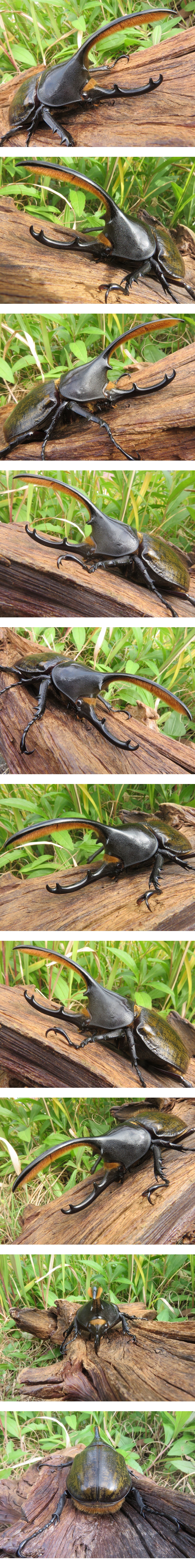 ※ 計測方法は、虫を平らな所に置き、ノギスにて計測し、胸角~上翅末端までの最大値約105mm、お尻までの最大値約106mm