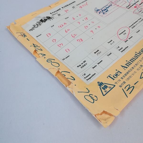 | ある程度の傷や汚れがある商品です。 ※ 商品画像の続きはこちらからご覧いただけます。 各用紙は東映アニメーションのカット袋に収められています。 各用紙には擦れや汚れ、変色、色移り、折れ跡などがございます。 一部用紙やカット袋に貼付されたテープが劣化して剥がれやすくなっていると思われます。 ホチキス留めにくすみや錆びがございます。 カット袋には擦れや汚れ、変色、折れ跡、破れなどがございます。 検品者からの一言 ダメージ等はございますが、まだまだお楽しみ頂けるかと思います。 - 商品状態に関しましては、あくまで主観によるものでございますので、ご参考程度にお考え頂くようお願い致します。 ※出品商品は全て中古買取品となります為、完璧をお求めの方、また中古品にご理解のない方におきましては、恐れ入りますがご入札をお控え頂きますようお願い申し上げます。 - ジャンク品、処分品、画像にて判断可能なご質問については、お答え致しかねます。 - 商品の色は、お使いのモニター設定や照明等により実際の商品と色味が違って見える場合がございます。 |