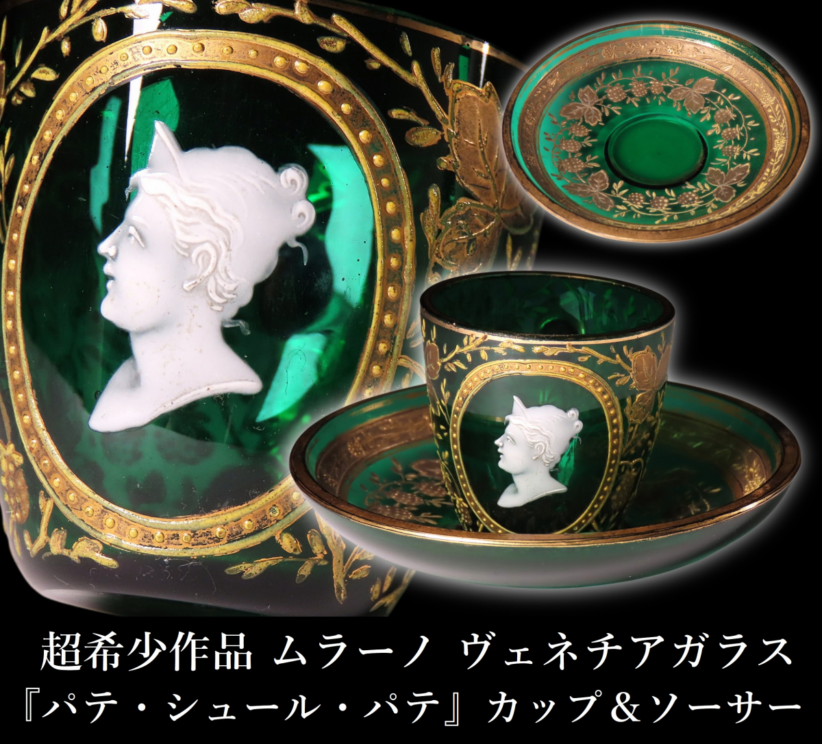 【ONE'S】超希少作品 MURANO ムラーノ ヴェネチアガラス 『パテ・シュール・パテ』 カップ&ソーサー 珈琲碗皿 工芸ガラス 西洋美術 | |||