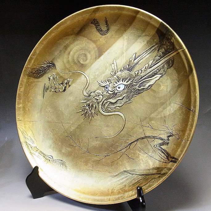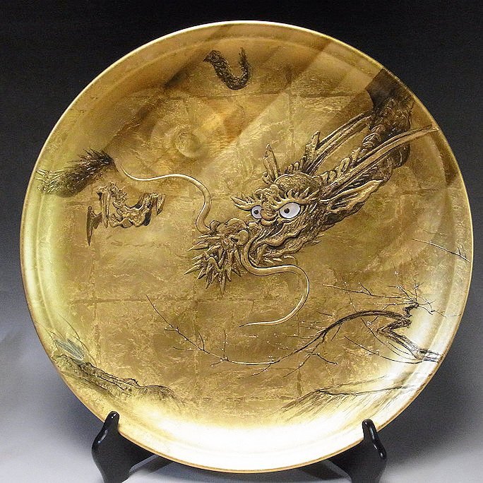 | 斉藤商店★金沢金箔 箔一 1.6尺 飾り皿 狩野山楽 雲龍図 販売価格44万円★ |