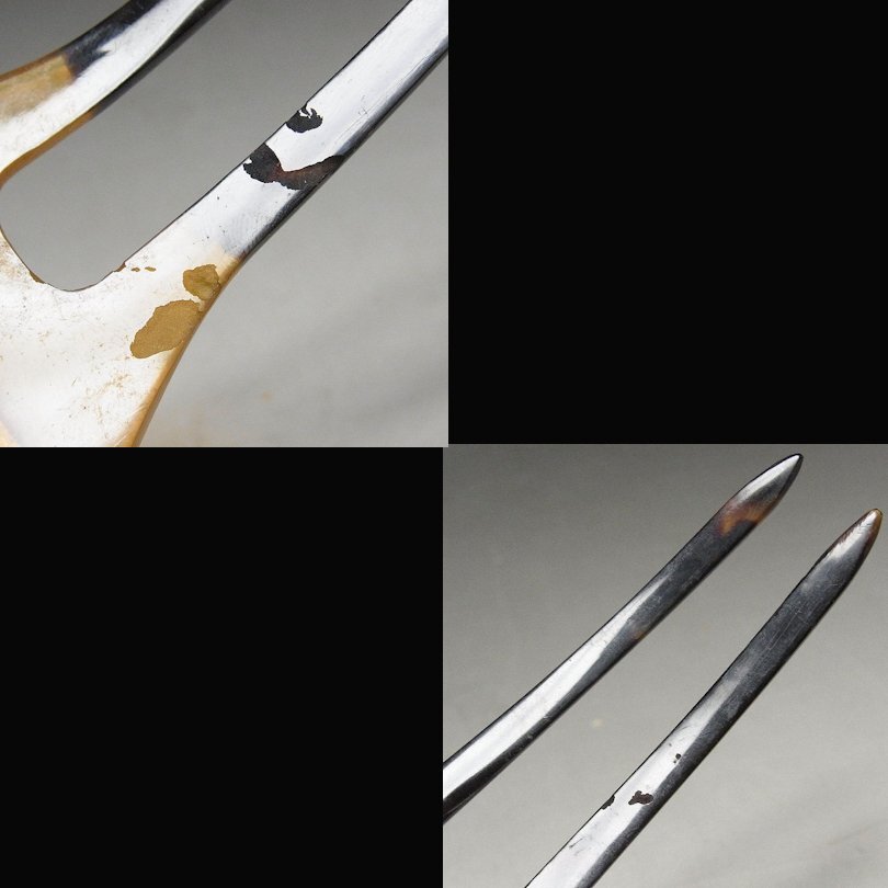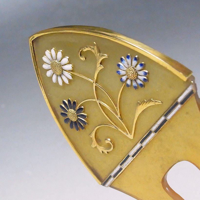 20金巻 金象嵌七宝 本鼈甲 簪 26gでございます。 厚手の20金を贅沢に使用したお品です。 鼈甲と髪が接触した部分に虫食いが見られますが、美観を損ねるものではなく 比較的良好な状態です。 お写真での状態確認をお願いいたします。 経年保管のお品ですので、保管に伴う経年変化はご理解ください。 金巻部に「K20」の刻印を確認致しました。 お品寸約 17×6cm 総重量 26gでございます。 お品は保証させていただきますので、レブリカや贋作の類だった場合や 説明と違う状態だった場合は返品はもちろん、送料や振込み手数料を当店で 負担させていただきます。 どうぞ宜しくお願い致します。 ※出品者の齊藤商店は創業75年の美術商です。ホームページは【こちら】をご覧ください。(外部サイト) 他にもいろいろと出品しておりますので下記バナーをご覧下さいませ。 ![]() |