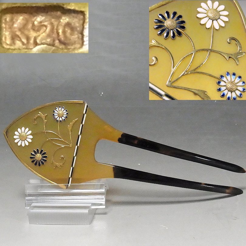 | 斉藤商店★20金巻 金象嵌七宝 本鼈甲 簪 26g★K20髪飾りかんざし |