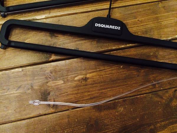 | 《Dsquared2-ディースクエアード-》の、純正非売品であるブランド専用パンツハンガー。 パンツを掛ける際に押さえるゴムがついており、非常に使いやすく実用性の高いハンガーです。 ブランドロゴが入っており、見た目でお店の雰囲気を味わえます。 ディースクエアードのパンツをお持ちの方はもちろん、大切かつお洒落に保管したい方にお勧め!! デニムコレクションをすてきにディスプレイするパンツハンガーとなりますので、是非この機会にご検討ください。 |