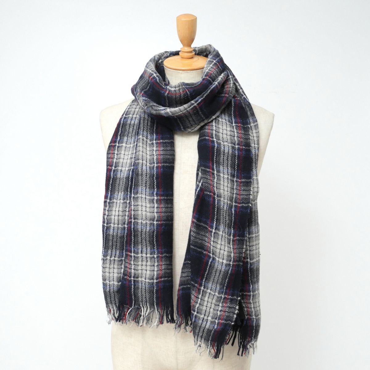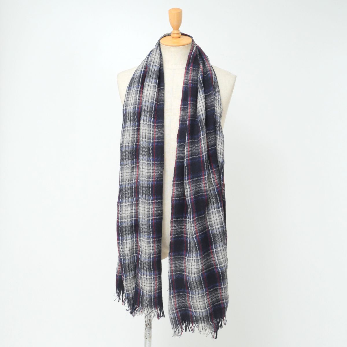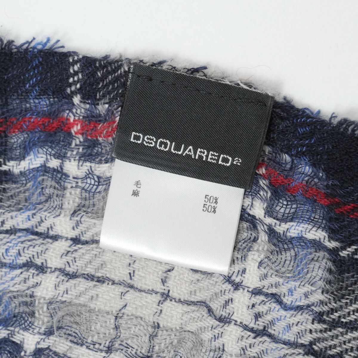 | MH8158◎DSQUARED2 ディースクエアード イタリア製 ウールリネン 毛麻 チェック柄 大判 ストール マフラー ショール 全長:約208cm×71.5cm | |||