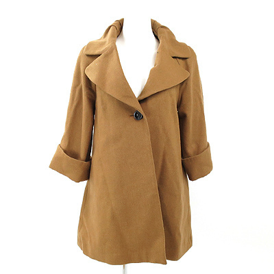 | フェミニンなAラインシルエットがとっても可愛い♪ タックで仕立てた大ぶりなデザイン衿が目を惹きますね☆ ベーシックカラーですのでお洋服を選びません! おしゃれなコートはコーデの主役になってくれますよ。 袖口に毛玉がみられるなど若干の着用感が残っております。 着丈約82cm 裄丈約65cm バスト約92cm 【サイズ】:(M) 【素 材】:(ポリエステル 55% 毛 45%(裏地 ポリエステル 100%)) 【 色 】:(茶) 【程 度】:(AB) 8252-20140210-015 499 001 | ||||