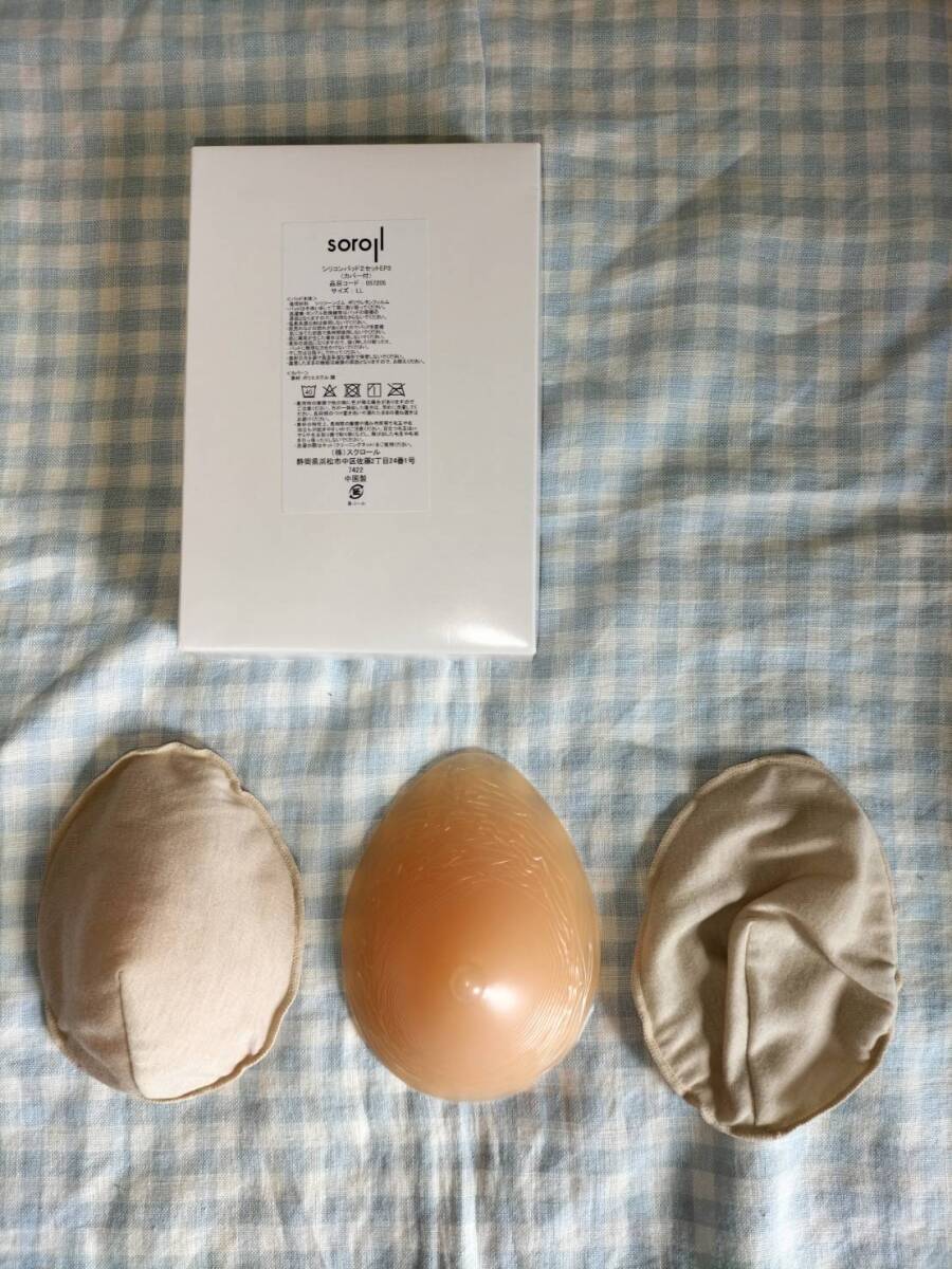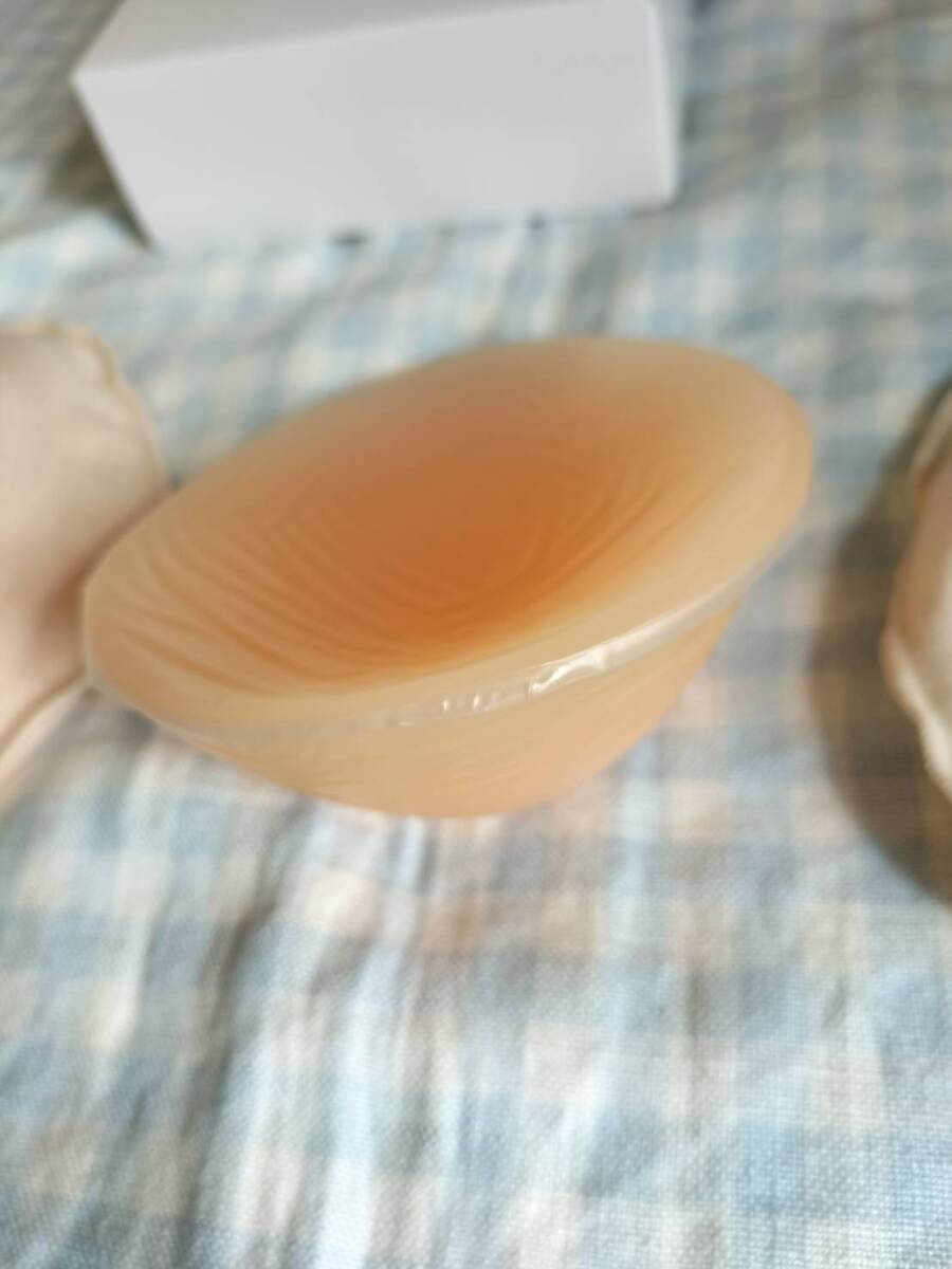 シリコンパッドですがベタつかず、カバーもあるので清潔に使えます。サイズLL 2つ しずく型です。縦向き横向きを自由に変えて乳癌全摘でなくてもバストアップや豊胸に使えます。 一つにつき重さ約150g サイズ:13cm×10cm 高さ3〜4cm(ブラジャーの間に挟むので、形により少し変わると思います。) 発送は箱は除きます。もし、箱ごと欲しい方は送料の設定を変えますので、入札前に質問にご連絡ください。