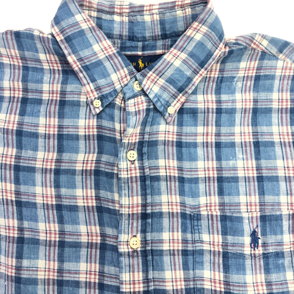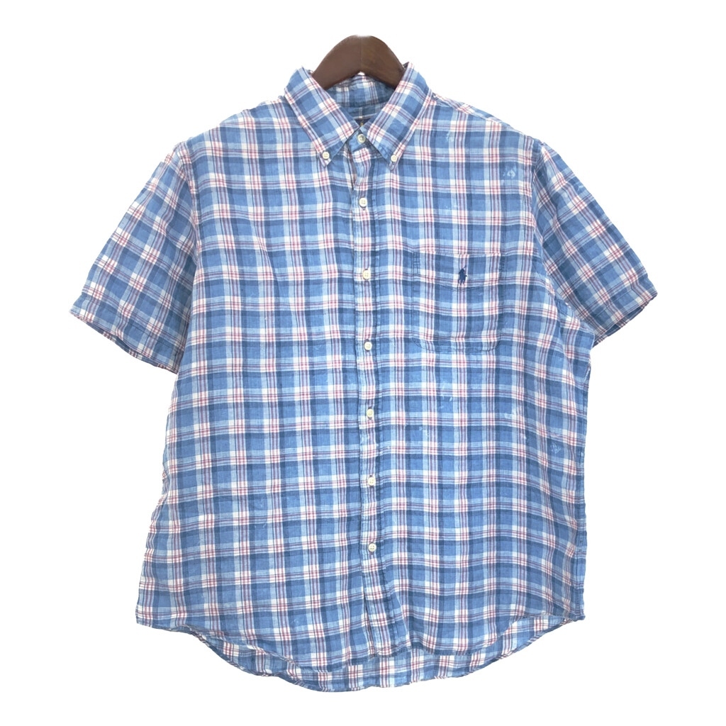 | 【商品管理番号】 T9956 【ブランド】 RALPH LAUREN/ラルフローレン 【サイズ】 XL 【実寸サイズ】 肩幅:約49cm 着丈:約78cm 身幅:約65cm 袖丈:約25cm 【主な素材】 表地 : 麻・リネン 【色】 ブルー 【仕様】 チェック 【状態】 特記事項:変色 | |||