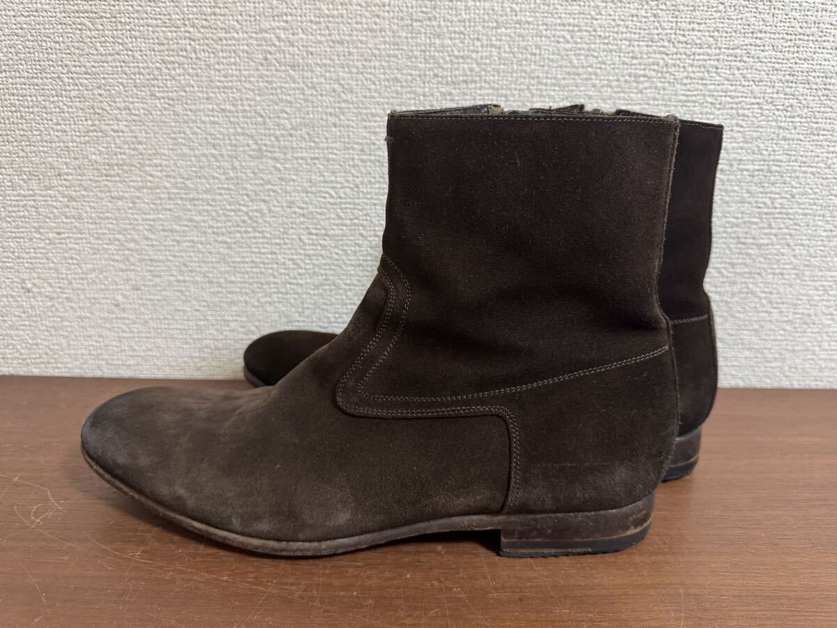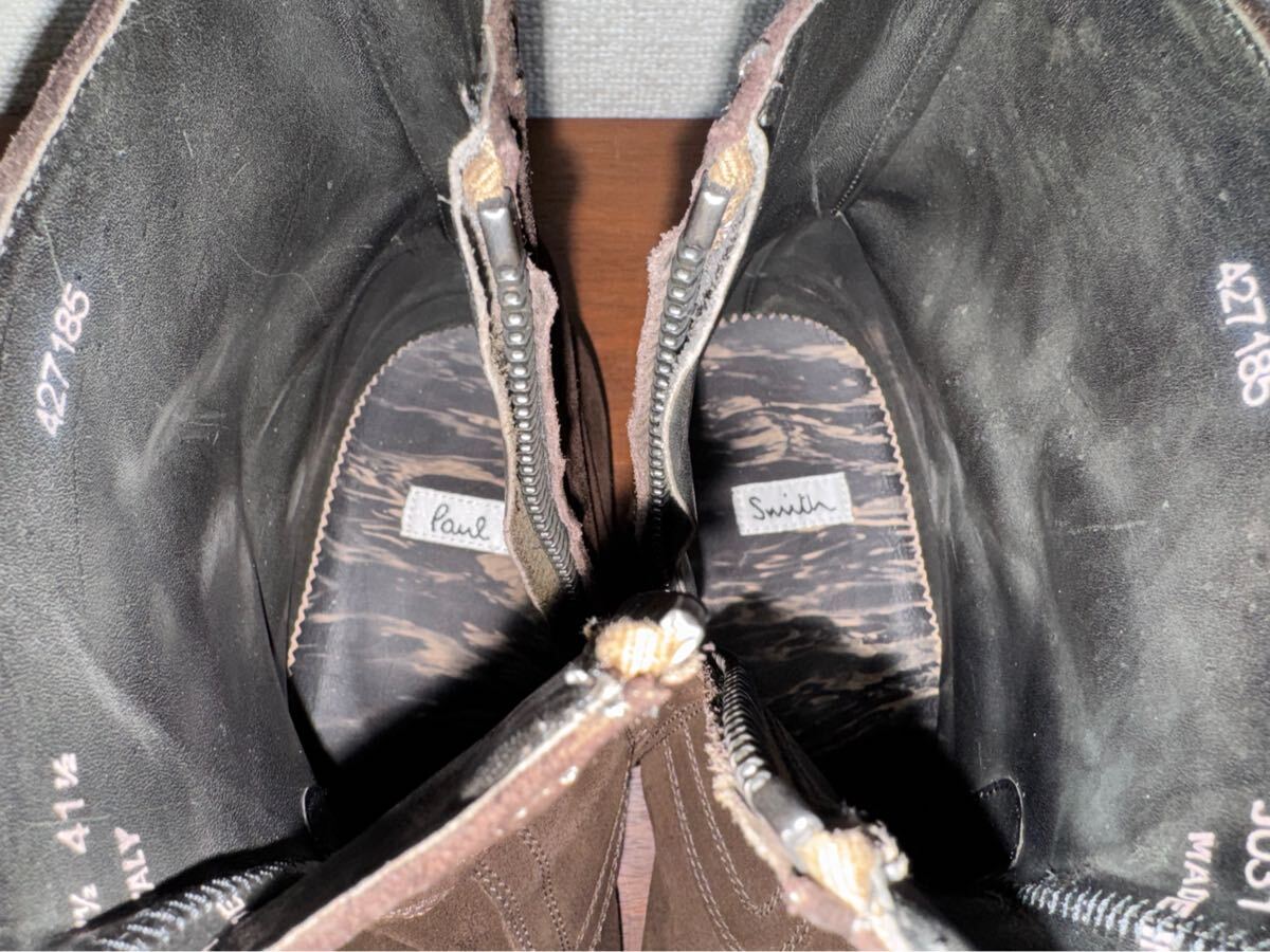【美品】 ポールスミス Paul Smith サイドジップブーツ スエード 26.0cm ブラウン ショートブーツ 本革 レザー UK7.5 J031 MS33