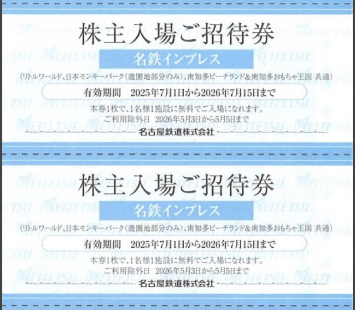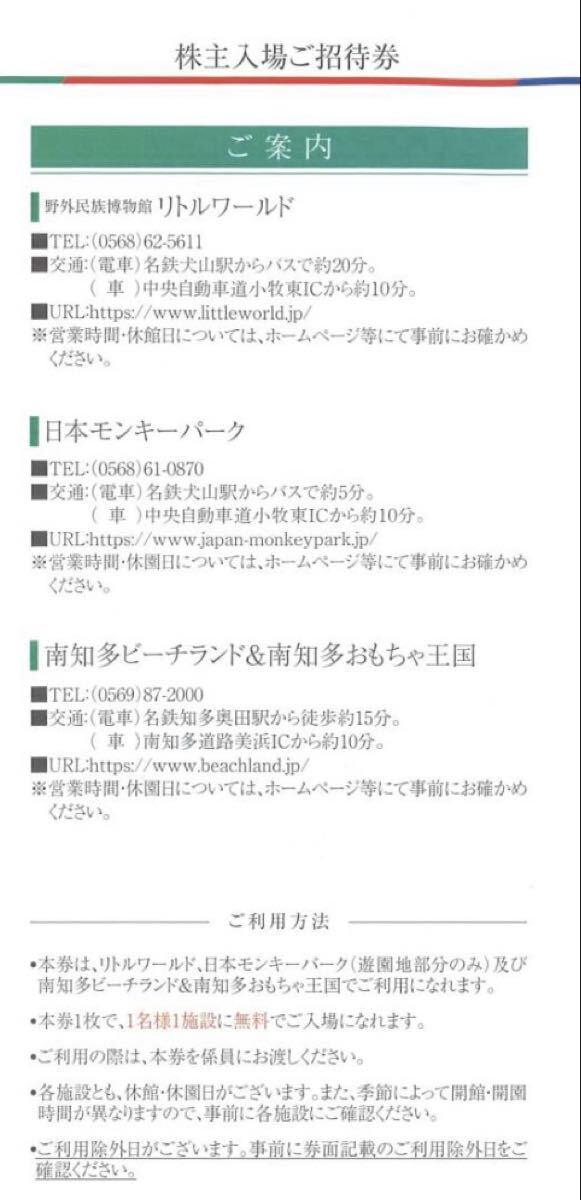 名古屋鉄道(名鉄)の株主優待券の共通招待券になります。| 出价者 | 信用 | 价格 | 时间 |