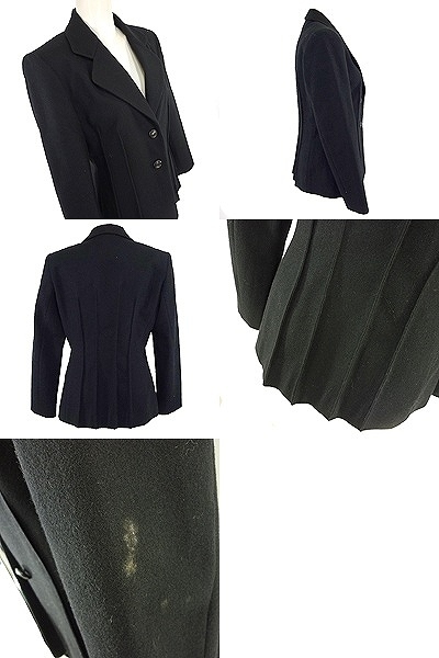 | 定番デザインのウールテーラージャケット。 タックが細身のラインを演出します。 袖に汚れがあります。 裏側に毛玉があります。 着丈約67cm肩幅38約cm袖丈約55cmバスト約76cm 【サイズ】:(38) 【素 材】:(毛100%) 【 色 】:(黒) 【程 度】:(BC) 管理番号 8544-20101113-004 217 003 | ||||