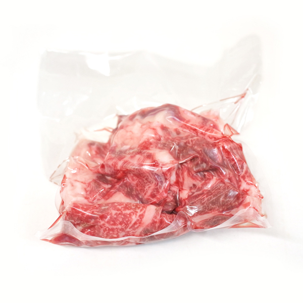 真空パック内の肉色が悪いように見える=悪い肉ではありません。 精肉の鮮やかな紅色は、筋肉色素(ミオグロビン)が空気中の酸素に触れる事により発生します。真空パックは空気に触れていないため、その現象が起きないのです。スーパー等で売られているスライスのお肉の重なった部分の発色が悪いように見える事も、この現象によるものです。真空パックの精肉は真空処理のため一時的に肉色が変化しておりますが、開封後15分程度空気に触れることで元の肉色に戻ります。 |
