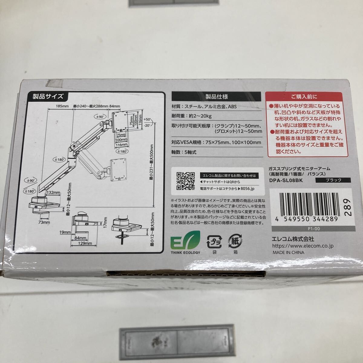 0711c2111 エレコム モニターアーム シングル ロング ガス式 17~49インチ対応 VESA規格対応 高耐荷重 ブラック DPA-SL08BK ※同梱不可※
