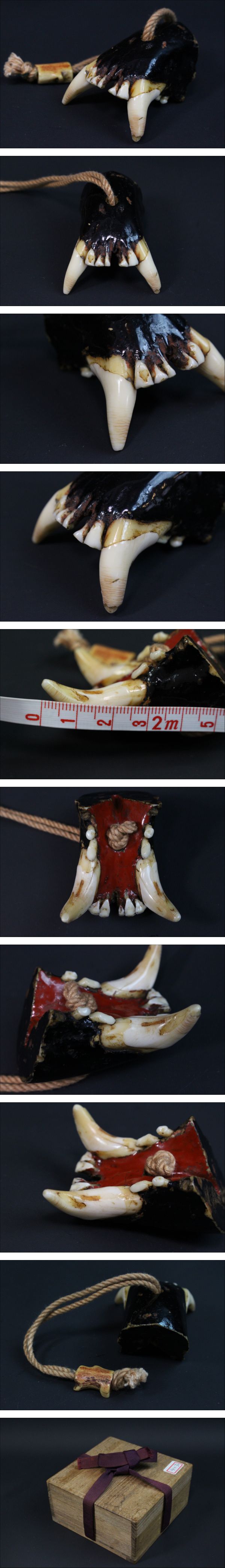 | 商品説明 | 【商品説明】 ◆詳細 狼の牙 根付 提げ物牙長さ約3㎝ 骨董 古民具 古道具 ◆大きさ (最大幅、若干大きさに誤差はあります) (約)幅4.3㎝×高さ3㎝×奥行5㎝ *写真をご確認の上、ご判断いただきましてご入札下さいませ 【注意事項】 ◆ 掲載している画像は実際の商品を撮影したものですが、ご覧いただくモニター等の環境により、実際の色とは異なる場合があります。 ◆ 落札後、3日以内にご連絡いただけない場合は、「キャンセル」とさせていただくことがあります。 ◆ 取扱商品の性質上、神経質な方は入札をご遠慮ください。 ◆ 評価の悪い方や新規の方は、入札を削除することがあります。 ◆ 評価に関しましては、取引終了後落札者様からいただきましたら、お返しする形となります。 ◆ 入札の取り消し、商品落札後の値引き交渉はお受けできません。入札前に写真をよくご覧になって、納得の上 入札にご参加ください。 ◆ 原則ノークレーム・ノーリターンでのお取引をお願いいたします。 【発送詳細】 ◆ ご入金確認後の発送となります。 ◆ 土日、祝日の発送は行っておりません。週明け、もしくは翌平日の発送となりますので、ご了承ください。 ◆ 同日に複数個 落札していただいた場合、同梱発送いたします。ただし、商品によってはお受けできない場合もございますので、ご了承ください。 |