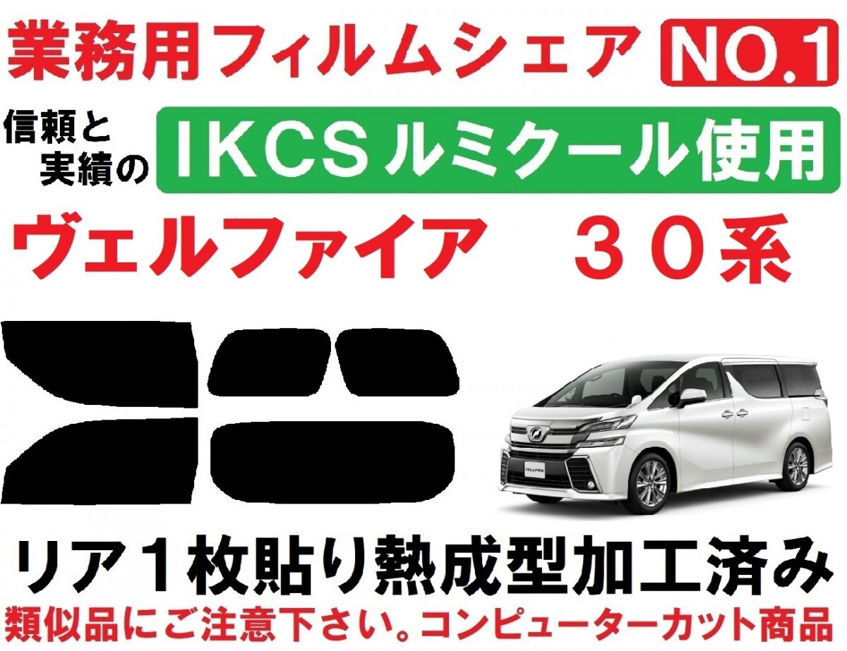 | ヴェルファイア30系用『IKCSルミクール使用』リア1枚貼り成型加工済みフィルムリア5面セットです。(専用施工液付き) ・信頼の品質と実績で永い間業務用フィルムとして選ばれ続けているIKCS製品です。 ・業務用フィルムの中で最も信頼性の高い、ベストセラー商品です。 ・詳しくはIKCS株式会社HPをご覧ください。 ※『ルミクール』は当店でも 施工実績・販売実績NO.1の超人気商品です。 平成27年1月~ AGH30W AGH35W GGH30W GGH35W AYH30W 等に適合します。 ※画像2、デジタルインナーミラーの有無でガラスの形状が異なります。ご落札後、ご指定下さい。 ※適合等 ご不明な点など有りましたら、お気軽にご質問下さい。 ◇◆◇施工に便利なプロ仕様のヘラセット付き商品も出品中です◇◆◇ こちら ◇◆◇精密コンピューターカット◇◆◇ 貼りやすさを最優先に各部のサイズ・形状など微調整し、改良を重ねた独自のデータを製作。 高精度な最新・大型カッティングプロッターによるカットで正確で滑らかなカットラインを再現しています。 ※ドア部分は通常サイズの他、貼り易さを最重視した小サイズもご用意出来ます。(画像3をご覧ください) ご希望の場合は落札後、ご指定下さい。 ◇◆◇リア1枚貼り成型加工済み◇◆◇ リアガラスの湾曲に合わせて熱成型加工して有りますので、平面に貼るのと同様にたるみが出ず1枚貼り出来ます。 通常の成型加工に加え、独自の加工を施し しっかりと成型加工してありますので、ヒートガン(ドライヤー)等は不要です。 ◇◆◇専用施工液付属◇◆◇ 軽視されがちな施工液ですが、貼りやすさに大きく関わる部分になります。中性洗剤などで代用せず、必ず付属の専用施工液をご使用下さい。 濃度については車種・季節などにより変わりますので、個別にお知らせ致します。 国内シェアNO.1の『IKCSルミクール』を使用しています。 ルミクールは経年退色が極めて少ない着色加工技術はもちろん、安定した冷暖房効率をアップする熱線遮断効果や断熱効果、内装を守り日焼けを防ぐため、全てのフィルムで99%の紫外線カットを実現しています。 ガラスの飛散防止効果で高い安全性を保ち、ハードコートタイプなのでキズにも強いカーフィルムです。 改良を重ねながら 信頼の品質と性能で、永い間業務用フィルムとして選ばれ続けています。 ■フィルムの種類■ 可視光線透過率 3% NS-003HC 可視光線透過率 7% NS-008HC 可視光線透過率13% NS-015HC 可視光線透過率20% NS-020HC 可視光線透過率30% NS-030HC 可視光線透過率46% NS-045HC ■全商品、キズに強いハードコート・紫外線(UV)99%カットです。 ※可視光線透過率が低くなるほどフィルムの色は濃くなります。 サイドとリアで濃さを替えたり等、可能です。 部分的にフィルムが必要になった場合、単品販売も承ります。 他にも30系ヴェルファイア用フィルム、各種出品中です。こちらもご覧ください。 ご不明な点など有りましたら、お気軽にご質問下さい。 | ||