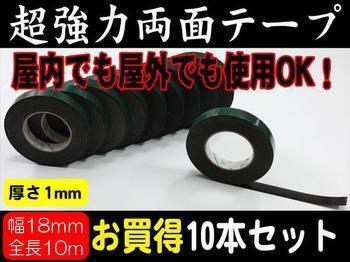 | 商品説明 | 超強力な屋内・屋外用両面テープです。 ◆職人さんも絶賛の商品です。 ◆カー用品取り付けや看板等用途はさまざま 【商品詳細】 テープ色:黒 セット内容:10本 1本のサイズ:幅18mm×長さ10m 厚さ 1mm (約) 1本単品も販売しております。 |