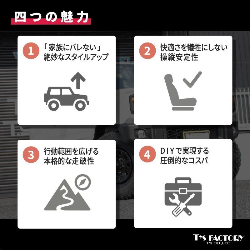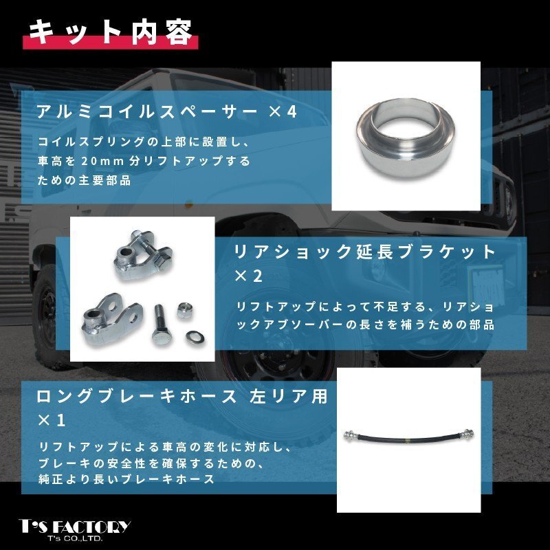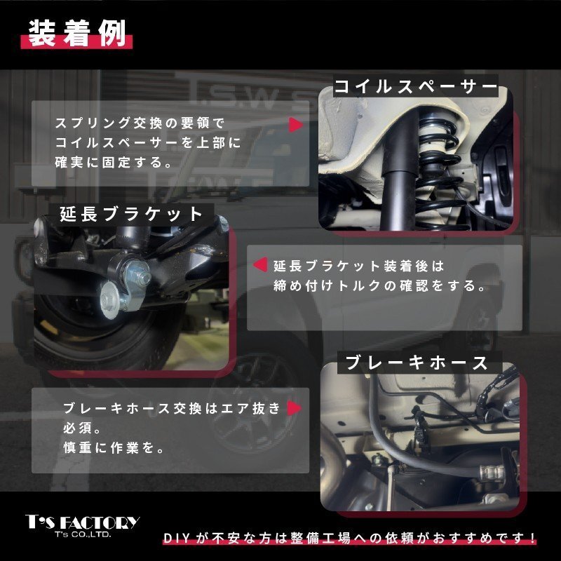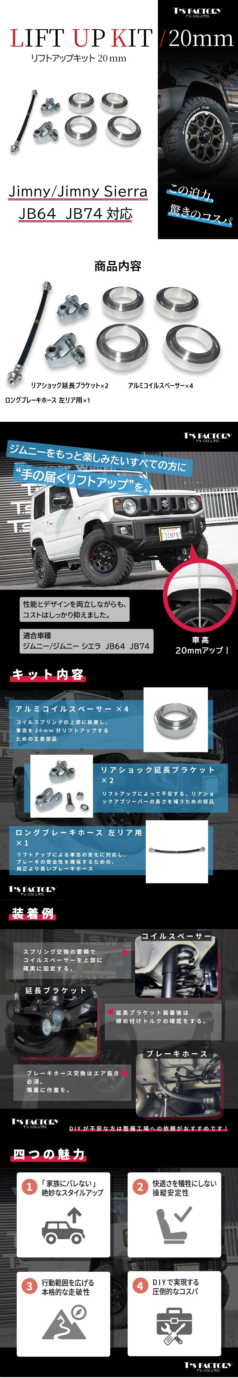 | 商品説明 | 純正の乗り心地を崩さずにコストを抑えたリフトアップキットになります。 厚み20mmのアルミコイルスペーサーを使用して車高をアップするので、 純正の乗り心地をキープしたままでお手軽ちょい上げスタイルに! 【キット内容】 ・アルミコイルスペーサー20mm 4個 ・リアショック延長ブラケット 2個 ・左リア用 ロングブレーキホース(30mmロング) 1本 コイルスペーサーを純正スプリングの上部に挟み込んで、約20mmのリフトアップ量となります。 車高が上がった分リアショックのストロークを確保するための延長ブラケットと リバウンド時に長さ不足となる左側のリアブレーキホースのロングタイプがセットになっています。 ※純正LEDヘッドライトのジムニー【XC】/ジムニーシエラ【JC】グレードは 別途、車高センサー補正ステーが必要となります。 ※キットの商品はすべて単品パーツとしてもご購入可能です。 |