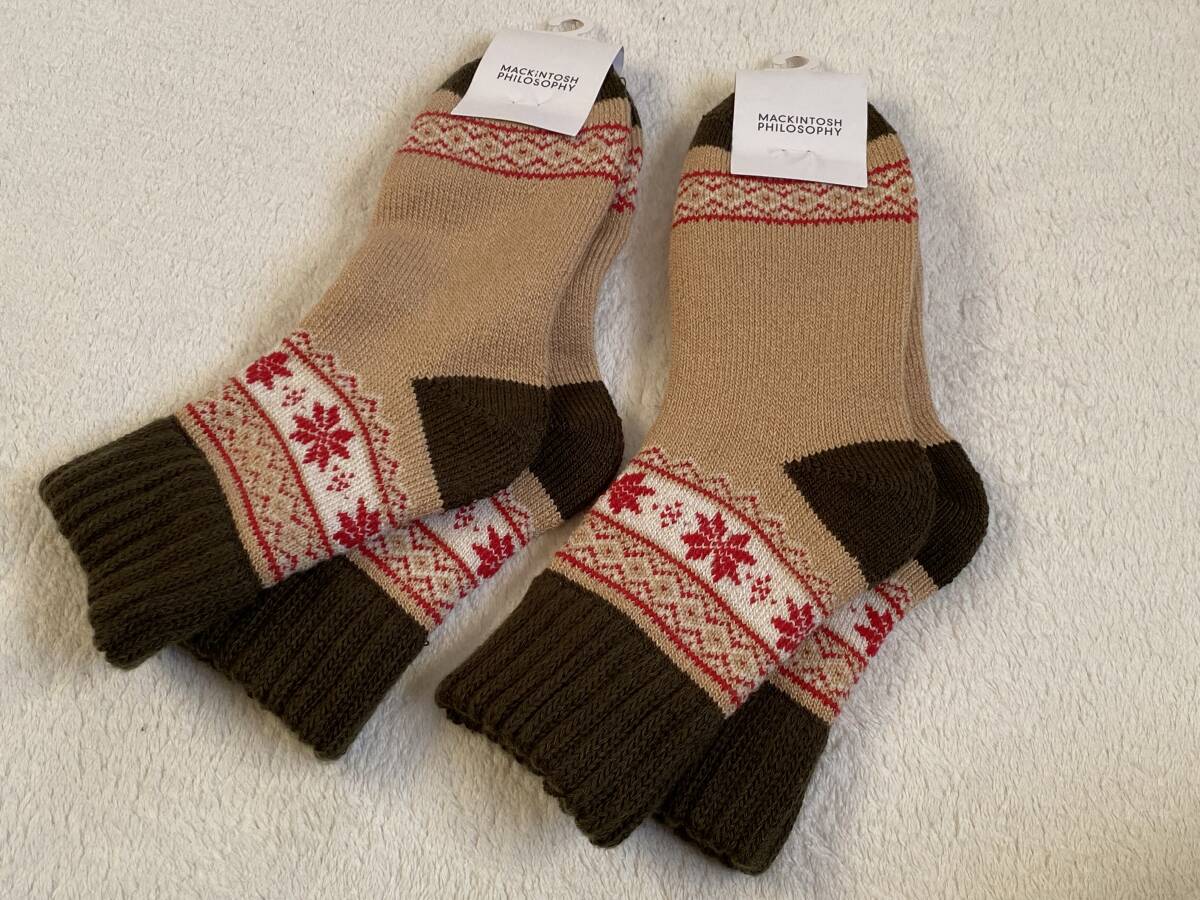 新品【マッキントッシュ フィロソフィー】 婦人あったかルームソックス2足 [福助製造] 定価2,420円(1足)×2足 =4,840円(税込) 同デザインの2足セット ★サイズ 22.5〜24.5cm ★品質 アクリル・ナイロン ポリエステル・毛・ポリウレタン |