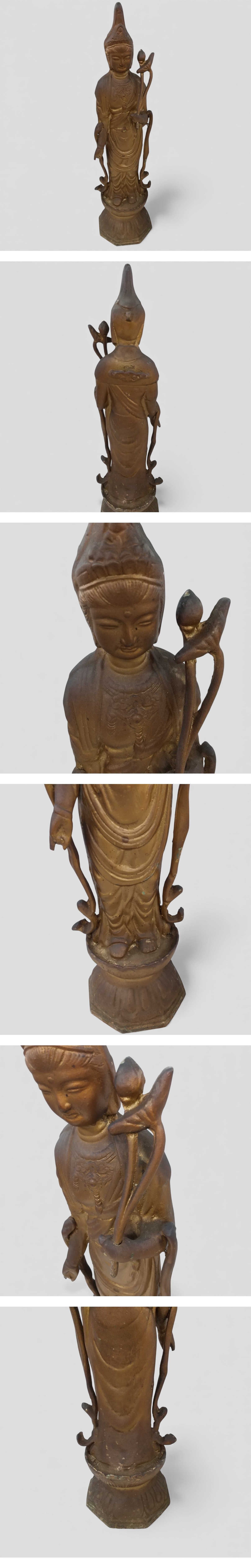 | ※必ず最後までお読みください。 Please be sure to read to the end. 一定要到最后※ | 商品概要 | 数あるオークションの中からこちらの商品をご覧頂きまして誠にありがとうございます! ※商品説明と注意事項を必ず全てお読み頂いた後にご入札下さい※ 引き続き 安心できる気持ちの良いお取引を心掛けてまいりますのでどうぞ 宜しくお願い致します! 色んなジャンルの商品を多数出品しておりますので、こちらをクリックしてご覧ください!! 東京都公安委員会 古物商許可 第307781505147号 ◎古美名品◎観音菩薩立像 鋳造 鉄製 高さ約50cm 約3.7kg 観世音菩薩 観自在菩薩即発送 ※最下部にも写真掲載中なので必ずご覧下さい。 【商品概要】 観音菩薩立像になります。 正式には「観世音菩薩」や「観自在菩薩」とも呼ばれます。 観音菩薩は、苦しむ人々の声(音声)を観じて救いの手を差し伸べる、慈悲深い仏様です。 蓮の花を持ったこの基本的な姿は「聖観音菩薩」と呼ばれ、他の様々な姿に変化する観音像の基本とされています。 日本では女性的なイメージが強いですが、本来は男性であったと考えられています。 阿弥陀如来の脇士(脇侍)として、その慈悲の心を体現する存在です。 お探しの方、是非この機会にいかがでしょう(^_-)-☆♪ 外形寸法:高さ約50cm 重量:約3.7kg 【状 態】 写真をよくご確認お願い致します。外装ランク:(---) 【詳細・備考】 写真に写っているものが全てになります。 また、タイトルや本文と写真が異なる場合は写真を正とします。 保管品なので状態判断には個人差があることを予めご了承の上 写真にてご確認ご判断をお願い致します。 譲り受けたお品で当方は専門店ではないので詳細の質問にはお答えできかねます。 また簡単な検品は行っていますが、譲り受けた商品のため欠品等見落としがある場合がございますので保証等はしかねます。 ※返品不可が入札条件となります。 ※中古現状とは動作未確認のジャンク品になります。 ※通電確認とは電源に繋げてONOFFの確認のみになります。 ※バッテリーや電池は消耗品なので経年劣化がある場合もあることをご了承お願い致します。 ※保管品に関しては未使用でも新品ではございませんので、保管期間による劣化等ある場合もございますので、新品をお求めの方はご入札をお控えください。 ※ジャンク品ではなくても中古品の性質上、配送途中や到着後に万が一不備不良が起きうる場合もございますがも保証はできかねますので、返金返品不可をご了承の上ご入札お願い致します。 ※未開封品に関しては中の状態が不明な為、不具合等ございましたらメーカーとご相談お願い致します。保証対象外とさせて頂きますのでこちらでは対応いたしません。 尚、実際の色とパソコンや携帯の画面を通じた色彩は異なる場合もございますのでお気をつけ下さい。 =外観ランク表記= (N)長期保管/未使用品(新品ではございません) (S)数回程度使用の美品 (A)多少の傷、若干の使用感がありますが程度良好の美品 (B)一般的な使用感あります。 (C)汚れ、使用感を感じるがまだまだ使える品物 (D)汚れ、使用感等が見受けられる難有品 (E)ジャンク品 ※大体の目安としてお考え下さい。 新品に近いものをご希望の方や神経質な方のご入札はご遠慮下さい。 ご入札頂いた時点で本文説明文に了承を頂き、商品にご納得して頂いたと当方で判断させて頂きますので 【ノークレーム・ノーリターンがご入札の条件となります】 また、弊社のオークションでは いろんなジャンルで多数出品しておりますので是非ご覧ください(^_-)-〇 ![]() ▶入札の取り消しは受け付けておりません。 落札後の質問やキャンセルも受け付けておりません。 尚、営業時間が9-18時となっておりますのでオークション終了間際や質問内容によっては返答できない場合がございます。 ジャンク商品に関してはいかなる場合も返品返金の対応はできかねます。 落札後のサイズ違いやイメージ違い等のキャンセル、クレーム、返品等はお受けできませんので予めご了承ください。 ご入札の方につきまして、当方にて評価が著しく悪いと判断した場合は、トラブル防止の観点からご入札を取り消させていただく場合がございますので予めご了承ください。 新規IDの方や、いたずら入札と判断した場合、入札削除させていただく場合がございますので、新規の方は質問欄にて購入意思を示してからのご入札をお願い致します。 ※の障害等で入札が不適切に成立した場合は落札された場合でも削除対象になりますことを予めご了承お願い致します。 取り置きは可能ですが物や金額によってはすぐに決済をお願いする場合がございます。 当方大量の商品を管理している為、複数落札の同梱ご希望の方は、「まとめて取引」の依頼を必ず行ってください。 ◆連絡方法◆ ▶当方連絡事項は全て取引ナビを使用しております。 ご連絡先、ご要望等は必ず「取引ナビ」にご入力お願い致します。※ご入札前の場合はdiamonds100ct@yahoo.co.jpまでお