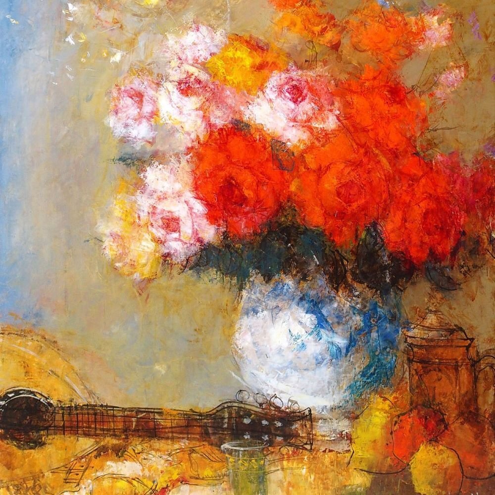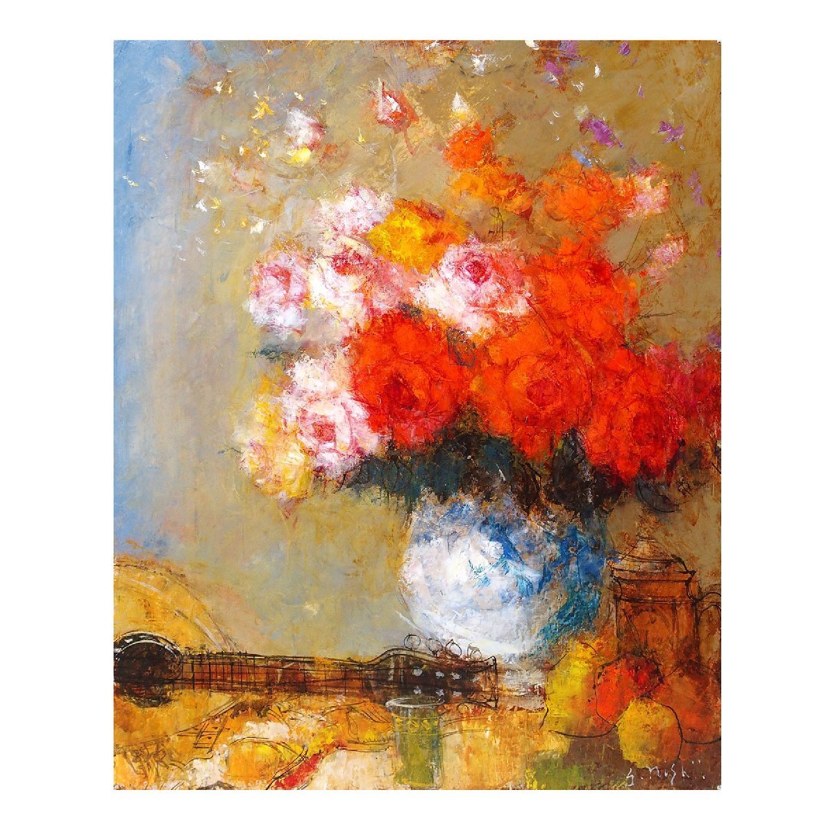 西井義晃 「薔薇と静物」 キャンバスに油彩