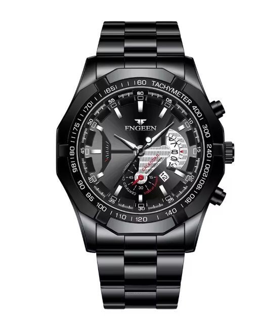 Fngeenメンズ高品質 腕時計 カレンダー クォーツ 防水 ブラック上質 質感 高品質 高級感 大人気 格安 |