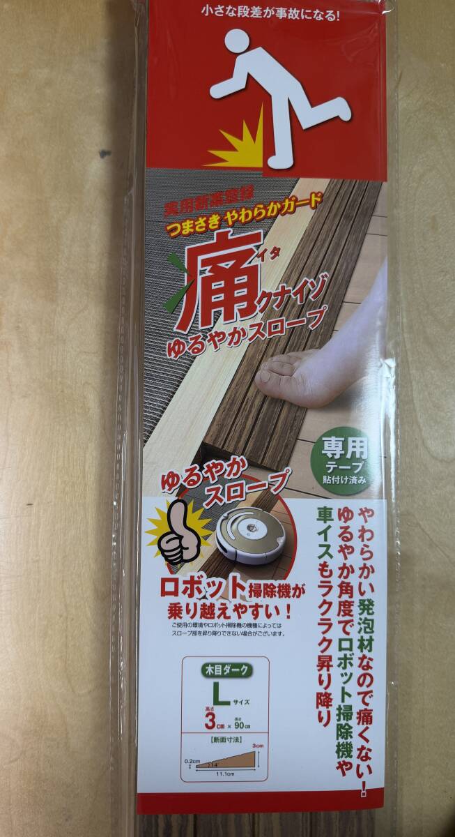 | ◆商品説明◆ | 段差を解消するスロープを作れる製品で、高さ 30mm x 奥行 111 mm x 横幅 900 mm の製品です。 ロボット掃除機の室内の段差の乗り越えやお子さんや高齢者がいるご家庭でのつまずき防止に利用します。 やわらかい素材でできているため、横幅については必要な長さにカットして利用することがきるかと思います。 高齢の家族のために設置しようと 7 月ごろに購入しましたが利用はせず保管するだけになってしまっていたため活用頂ける方がいらっしゃればと思い出品をしております。 写真については、商品が長いことからパッケージの商品名やサイズがわかる部分のみとなっておりますが、ヨドバシカメラで購入し新品・未開封の状態です。 配送されたきた箱は写真撮影のために開封しましたが、同じ箱に入れ発送をさせて頂きます。 |