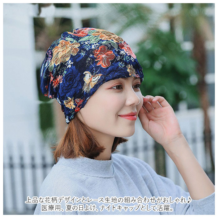 | 商品説明 | ・・サラッと軽い付け心地のワッチキャップが発売。 ・上品な花柄デザインとレース生地の組み合わせがおしゃれ♪ ・薄手の生地感でとっても軽量! ・頭のカタチに合わせて心地よくフィット。 ・柔らかく優しい肌触りの裏地付き。 ・通気性が良く、オールシーズン快適に着用可能。 ・ご自宅で手洗いできて、お手入れがラクチン。 ・折りたたんでコンパクトに持ち運びOK。 ・医療用、夏の日よけ、ナイトキャップとして活躍。 |