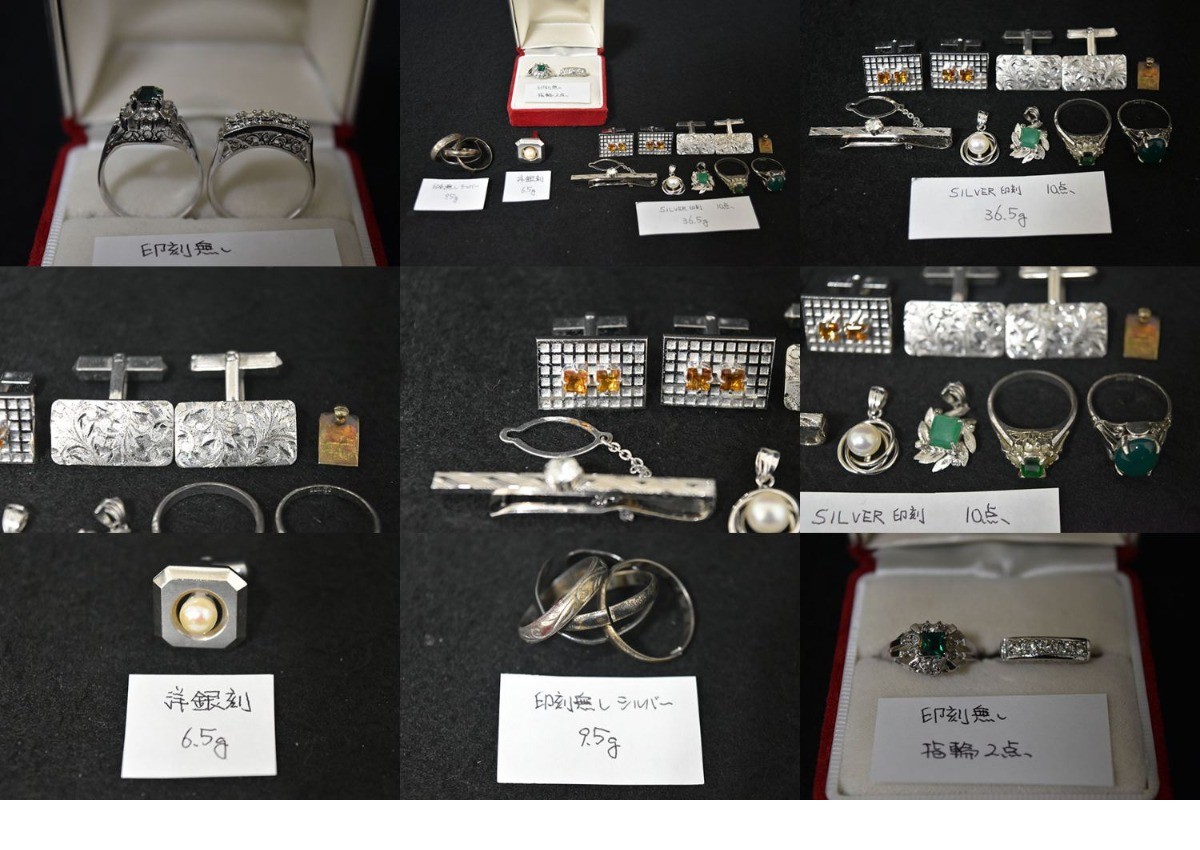 【光成】アクセサリー「SILVER印刻・10点・36.5g」「洋銀刻1点・6.5g」「印刻無し指輪5点」全16点