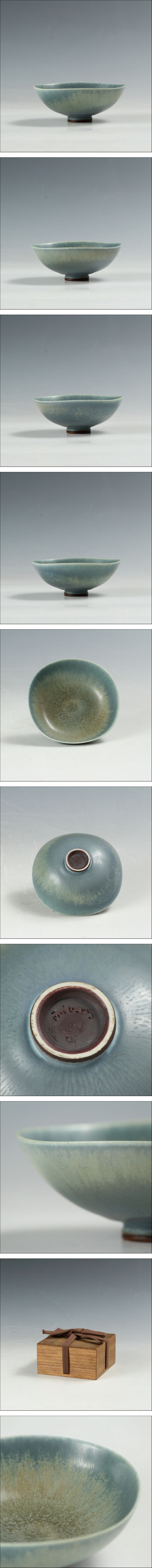 | 商品説明 | ◆◇ ベルント・フリーベリ(Berndt Friberg,1899-1981/SWEDEN) グスタフスベリ 淡青釉 ミニボウル/mini bowl 1958年/ 酒器,酒盃 / ぐい呑 木箱◇◆洋食器 おしゃれな器 モダンデザイン 陶芸 陶磁器 古陶磁 porcelain, art piece, world-renowned artist dbsy13092 ≪ サイズ ≫(若干の誤差はご了承ください) 幅 10.5ⅹ奥行 10.5ⅹ高さ 4 cm ≪ 状態 ≫ 美品です。 ≪ 備考 ≫ ベルント・フリーベリはヴィルヘルム・コーゲのもとでグスタフスベリ工房でのキャリアを積みはじめ、生涯多くの作品を自ら轆轤で手掛けて『神の手』の異名を得ました。リサラーソン、リンドベリと並んでグスタフスベリ製陶所が輩出した北欧を代表する名工の1人です。 この作品は、伝統的な兎毫盞の釉薬を思わせながら、北欧らしいモダンな空気を併せ持った神秘的な作品。1958年作と言われる『』の刻印が入り、脂の乗っっていく時期の作品であることがわかります。実際に使うのにちょうどいい、掌の収まりのサイズです。 箱は合わせ箱です。 ≪ 箱行・鑑定・付属品≫ 木箱 |