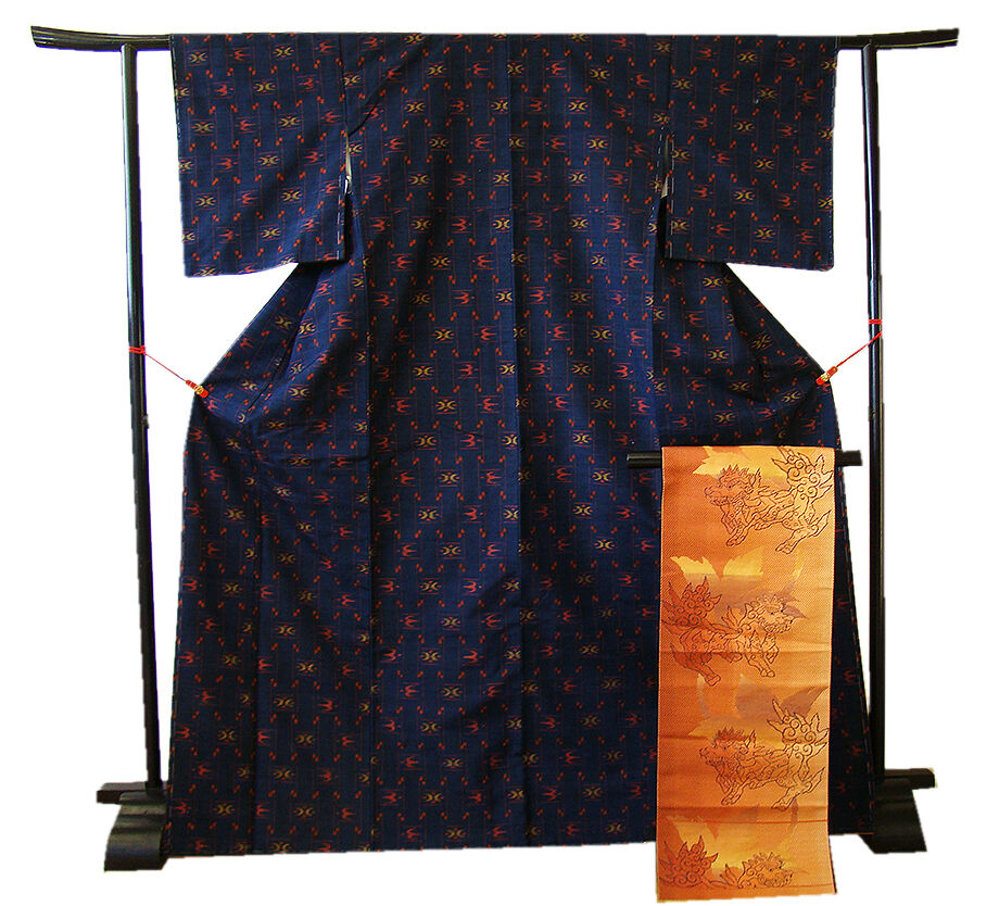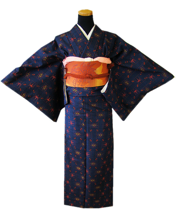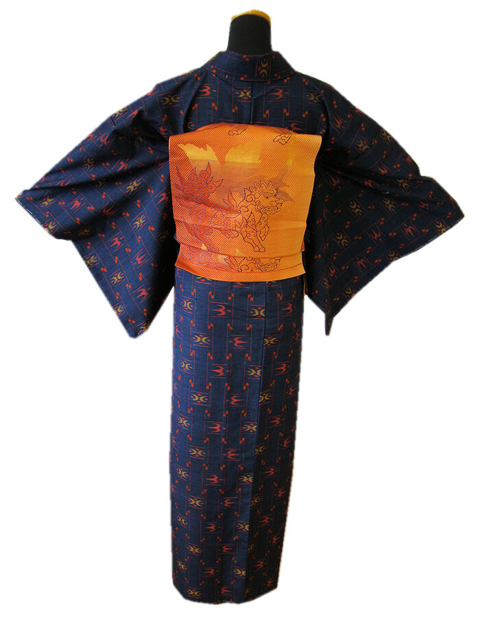 | 商品説明 | こちらのお品は「袷」ですので10月から5月までお召頂ければと思います。 海に囲まれ、豊かな自然のなかで育まれた素朴で温もりを感じさせるその風合いが 着物通の方々の心を魅了する、一枚は欲しい伝統工芸品の琉球絣です。 大変にしなやかな手触りの中にさらりとして心地良いハリのあるその独特の風合。 シャキッとした素材感は肌にまとわりつかないサラッとした 着心地が魅力的の伝統工芸品の琉球絣です。 シワになりにくく、日中のお出かけにも気兼ねなくお召し頂けます。 ほどよいシャリ感がとても心地よい地色のお色目は、 渋い濃紺色地にエンジ、黄土色の燕柄が織り成され何とも粋な装いです。 落ち着いた雰囲気を醸すシックな色彩を基調に、一面にシンプルな絣を織り成しました。 民芸的でありながらも都会の街並みにもピッタリと調和する小粋な仕上がりとなっております。 使われている紬糸の質の良さや熟練した織り手が時間をかけて手織りした絹の凛とした贅沢さ。 身に纏って頂ければ肌で実感して頂けることでしょう。 八掛は琥珀色(正絹)、幅広い年代の方にお召頂けます、 残念ながら証紙はございませんが手触りや織等から琉球絣だと思われます。 帯は扱い易く〆易いなごや帯(六通柄)、 土器色地に獅子舞柄の織柄が情緒溢れる粋な帯姿を奏でております。 また、帯揚げはしなやか絞り柄、ピンク色t白色のぼかし地、 帯〆は平組、茶色地の組紐となっております。 |