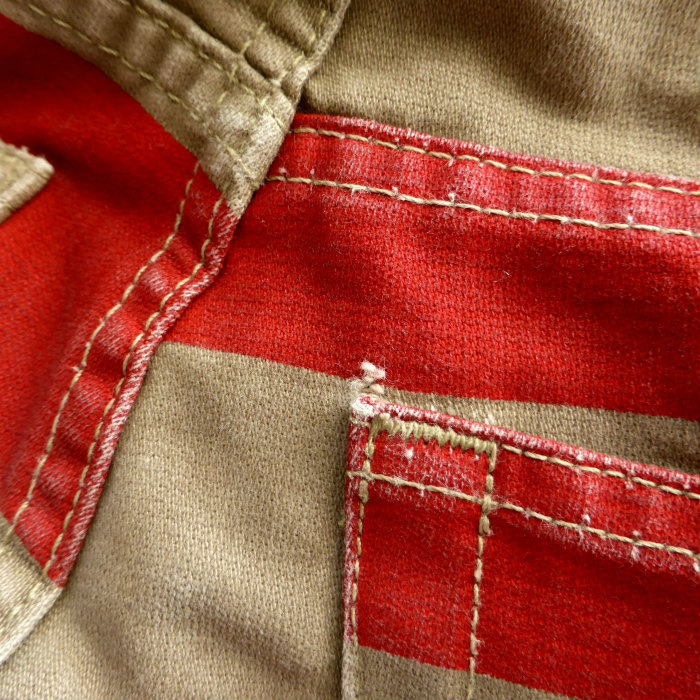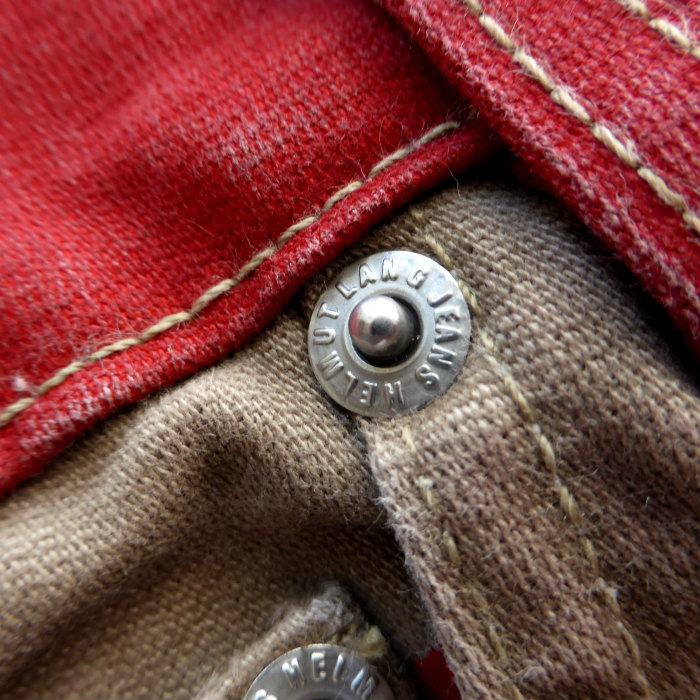 | ヘルムートラング(HELMUT LANG) プリズナー パンツ デニム GTRタグ 初期型 本人期 28 レッド×カーキ ウェア(中古) |