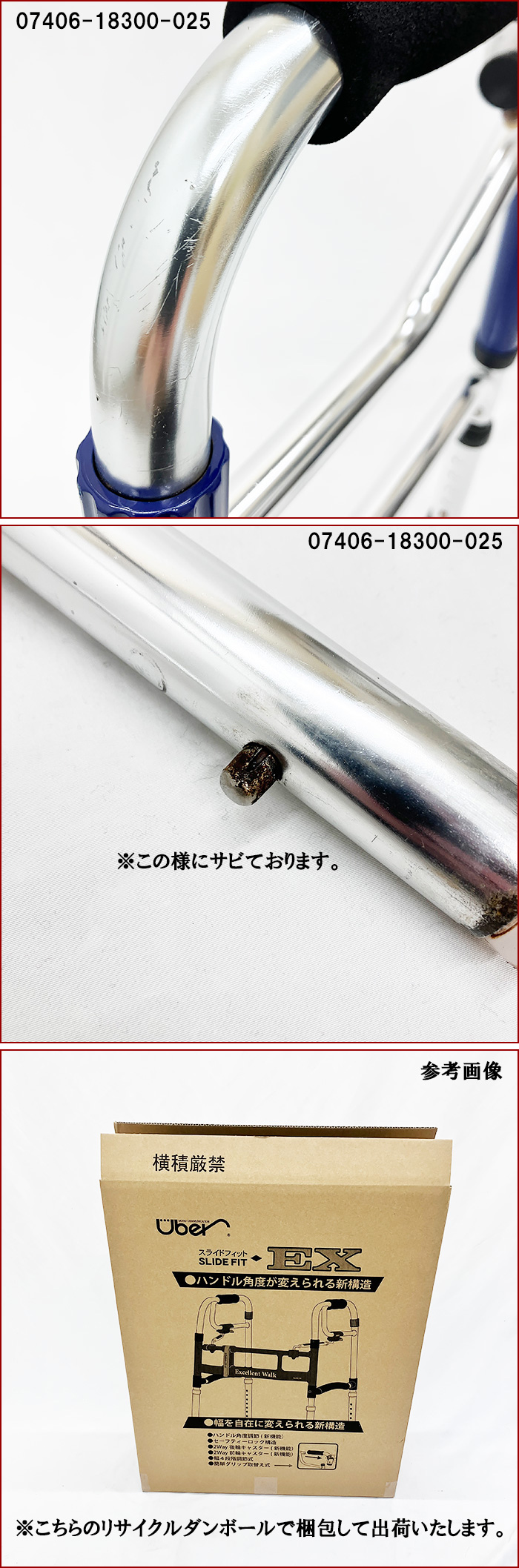 | ※介護保険貸与にて使用した中古品です(メンテナンス済)。 ※リサイクルダンボール(別商品のダンボール等)での梱包です。 ※下記内容をご了承いただいた上、ご注文ください ・中古品につき、メーカーおよび弊社の保証はございません。 ・お客様のご都合による返品は受け付けておりませんので、ご了承ください ・機能性の確認、メンテナンスには万全を期しておりますが、中古品につき使用上における事故や怪我については責任を負いかねますのでご了承ください。 |