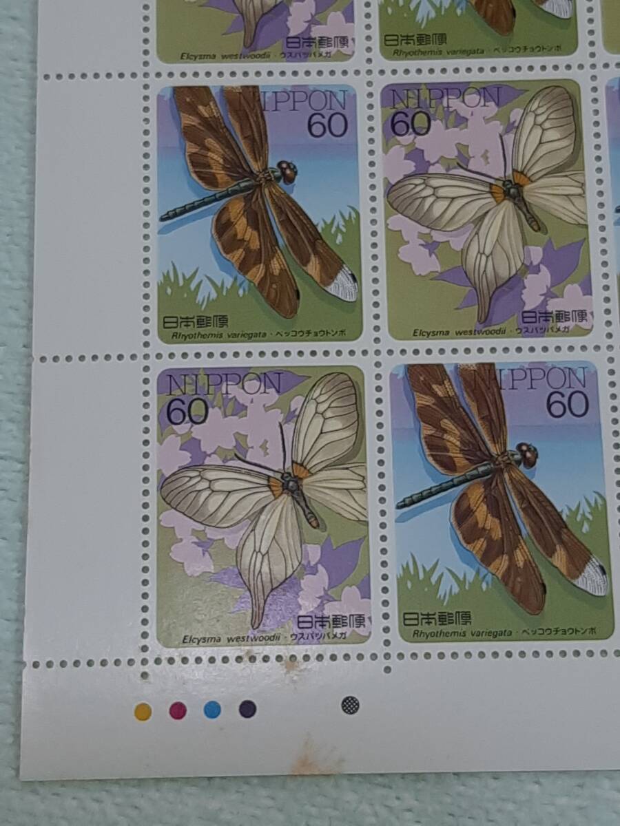 昆虫シリーズ 第3集 ウスバツバメガ ベッコウチョウトンボ 1986 切手シート1枚