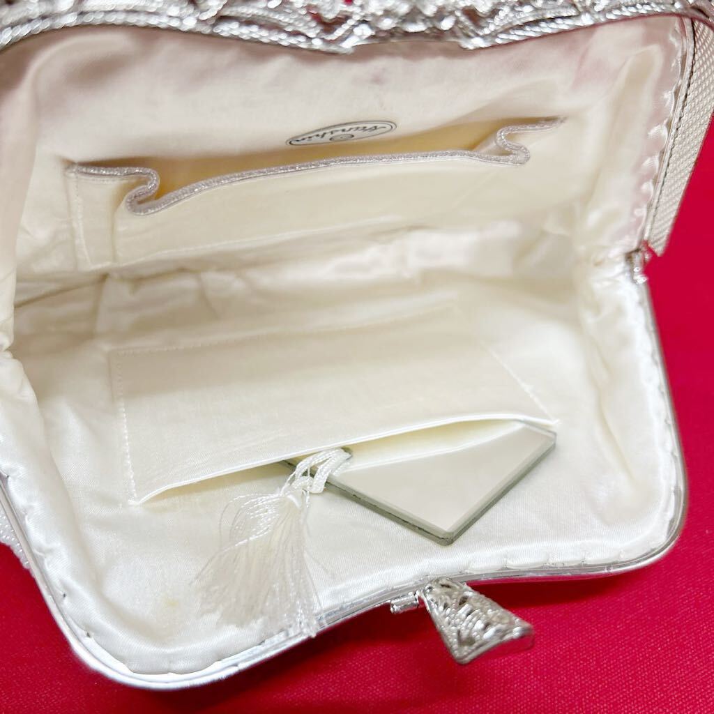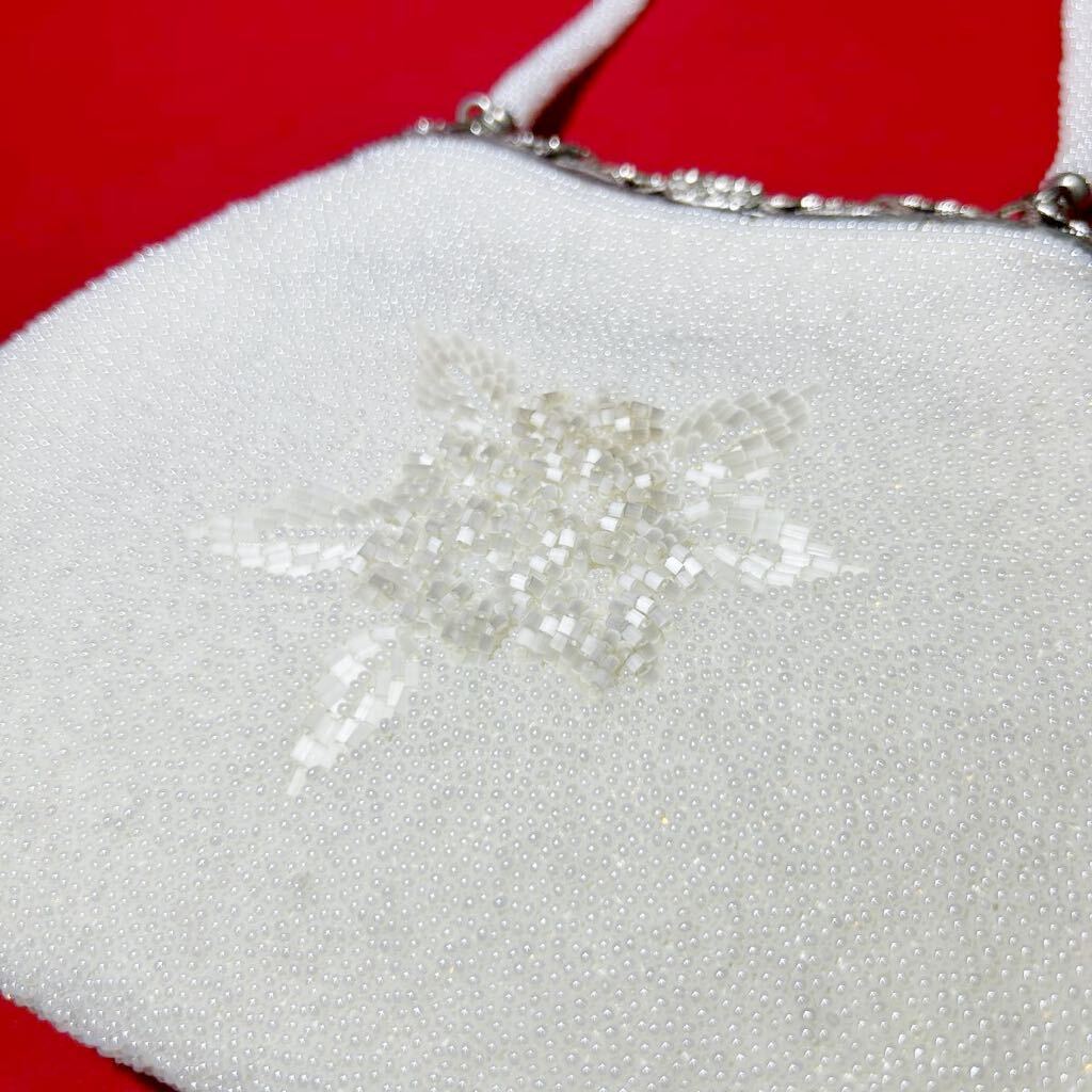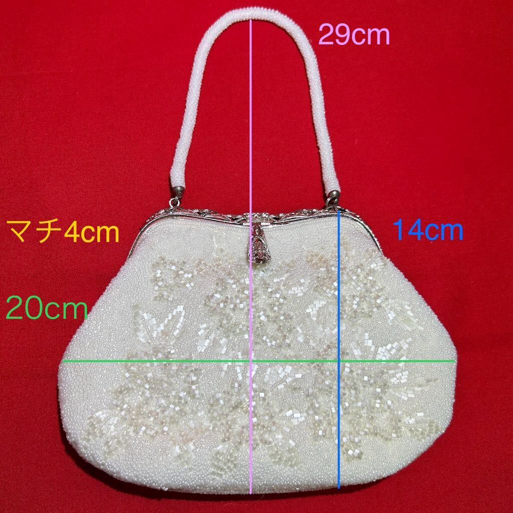 ★美品★ Hanshin ビーズバッグ ハンドバッグ パーティバッグ 総ビーズ 和装小物 和装バッグ 着物 白 ホワイト 結婚式 日本製 女性(09026A
