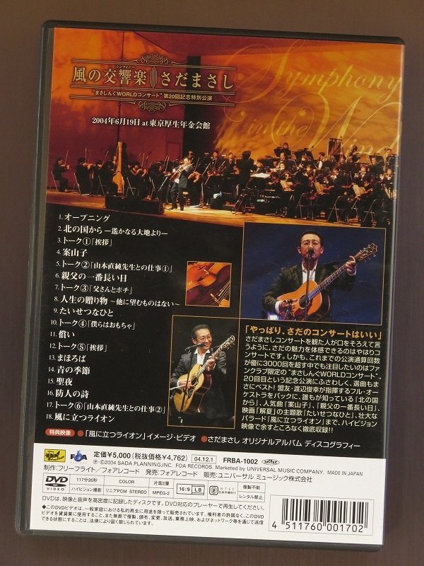 | ★☆(鹿児島発送)【中古品】 DVD #23 〔LIVE〕 風の交響楽 / さだまさし まさしんぐWORLDコンサート第20回記念特別公演 FRBA-1002 ☆★ | ||