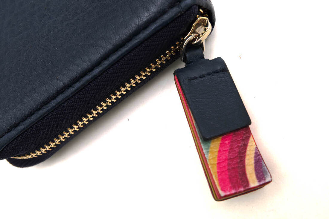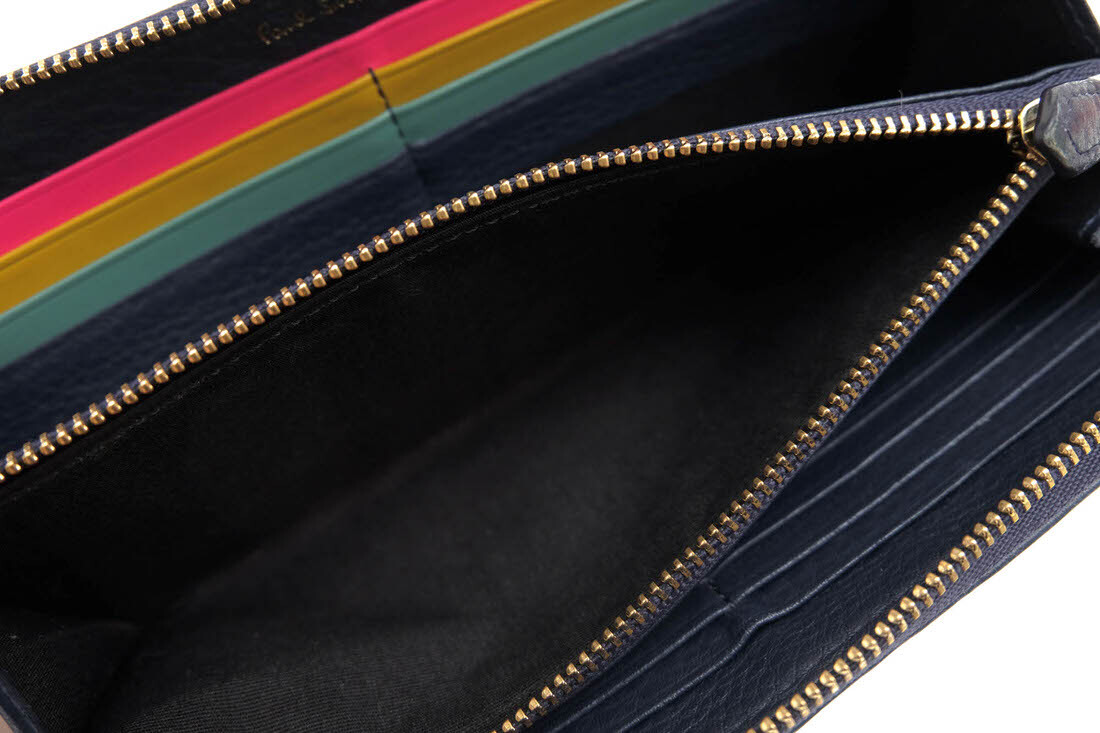 | タッセルと内側のカード段にストライプのように見える配色を施した「スワールタッセル」シリーズ。とても柔らかい手触りの牛革を使用し、シンプルなデザインにさりげないポール・スミスらしさを表現しています。カードを収納するためのカードスリットが充実しており、コンパクトながらも実用的な仕様となっています。 |