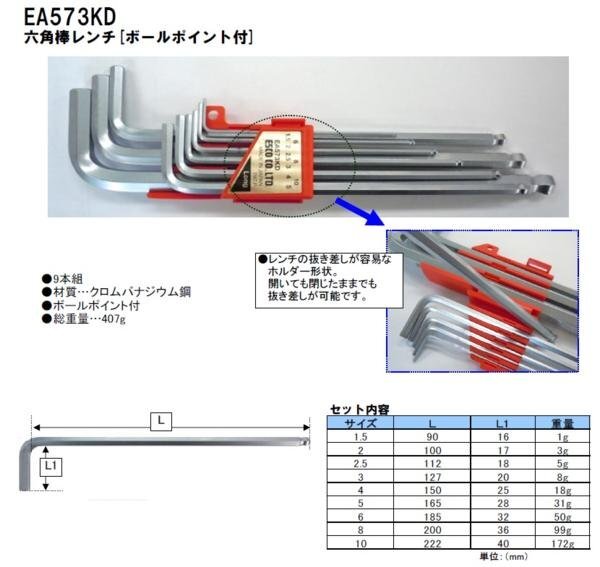 | ESCO 1.5- 10mm [Ball-Hexagon] レンチ EA573KD |