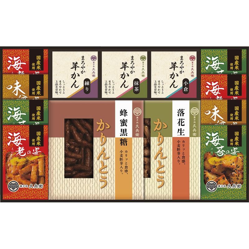 昔ながらの素朴な味のかりんとう、夏でも冬でも楽しめるまろやか羊かんと国産米だけで作った3種類のあられを詰め合わせました。| こちらの商品の配送について |
