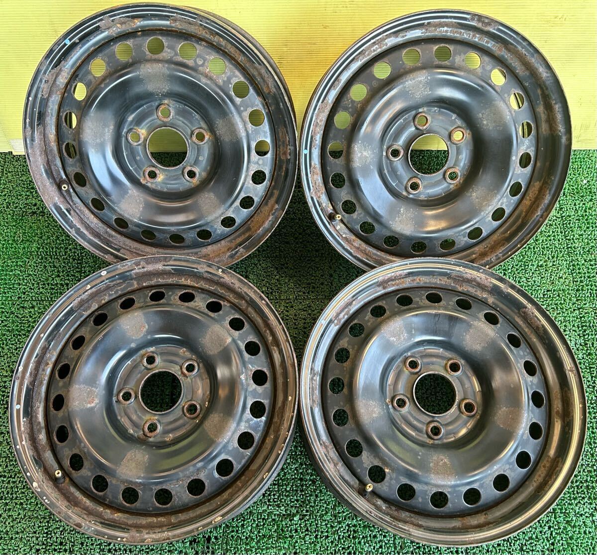 16インチスチールホイール 日産純正刻 5穴 PCD114.3 16×6.5J ハブ66mm 日産カバーあり サビ、腐食、傷あり、汚れあり