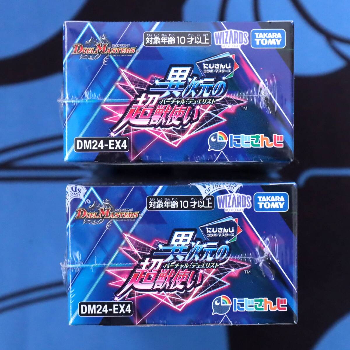 デュエルマスターズ にじさんじコラボ・マスターズ「異次元の超獣使い」シュリンク付き未開封ボックス2個セットです。フリマなどはなく、正規取扱店で私自身が購入した商品ですので中身の入れ替えはあり得ません。商品は個体ごとに撮影しており、掲載している画像の商品をお送り致します。*ご落札後24時間以内にご決済をお願い致します。*ご決済頂けない場合はキャンセルさせて頂きますのでご承知おき下さい。