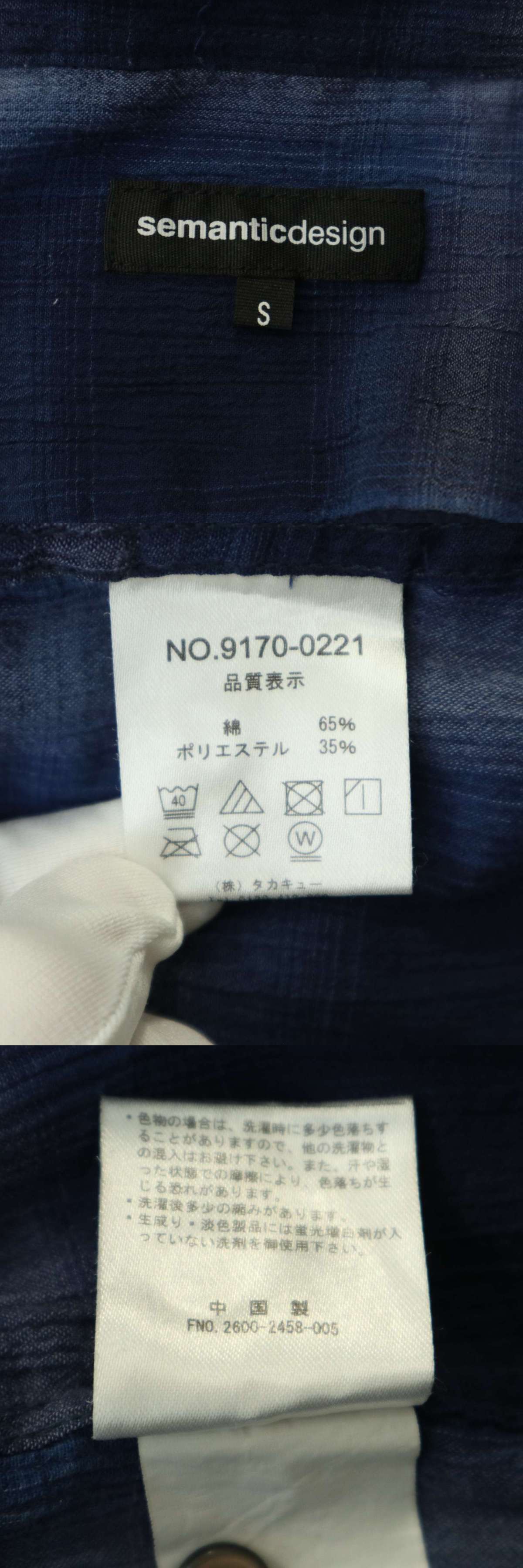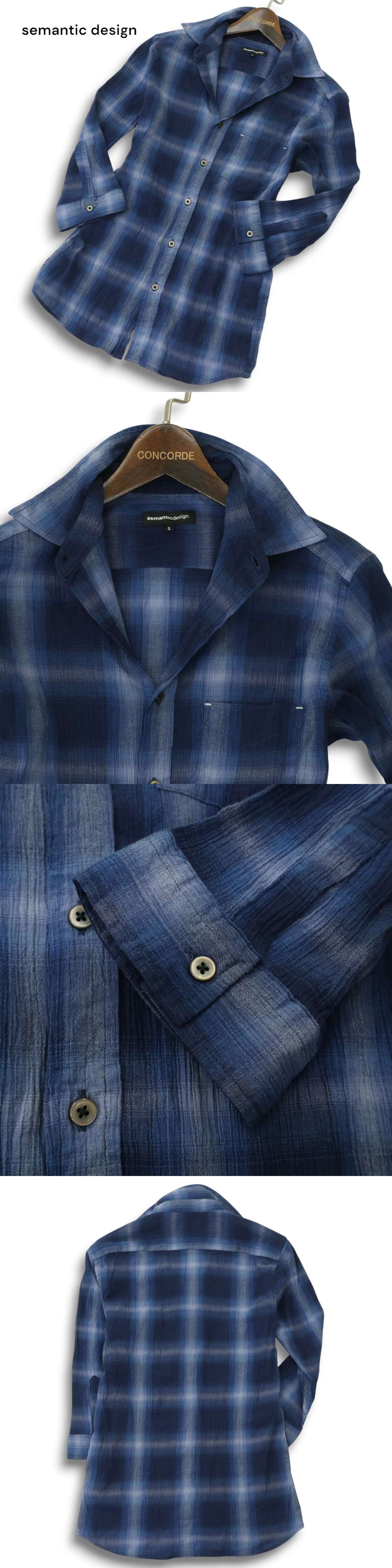 | semantic design セマンティック デザイン 春夏 シワ加工★ 7分袖 スリム チェック シャツ Sz.S メンズ ネイビー A5T02770_3#A | |||